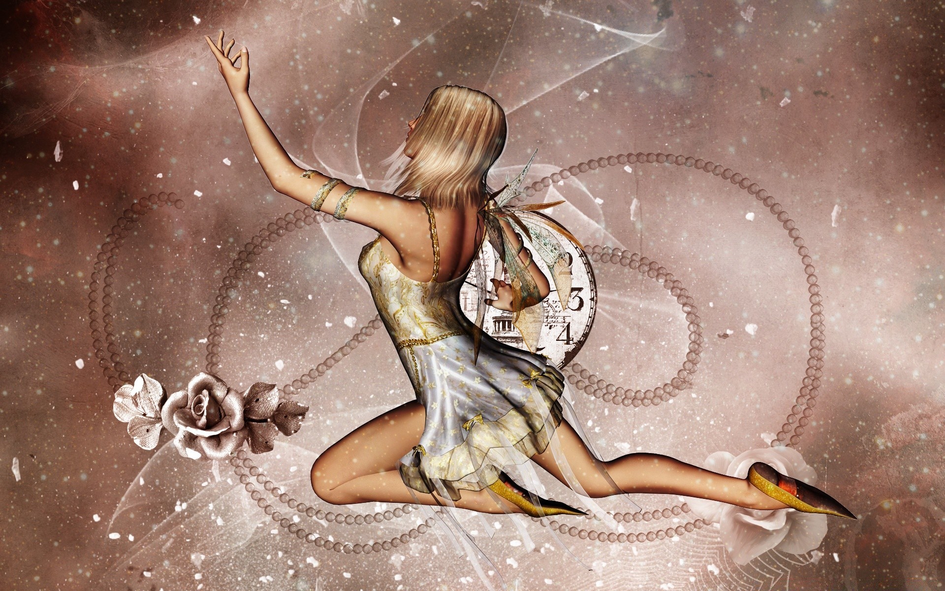 Dizlerinin üzerinde bir saati olan beyaz elbiseli yetişkin bir kadın
