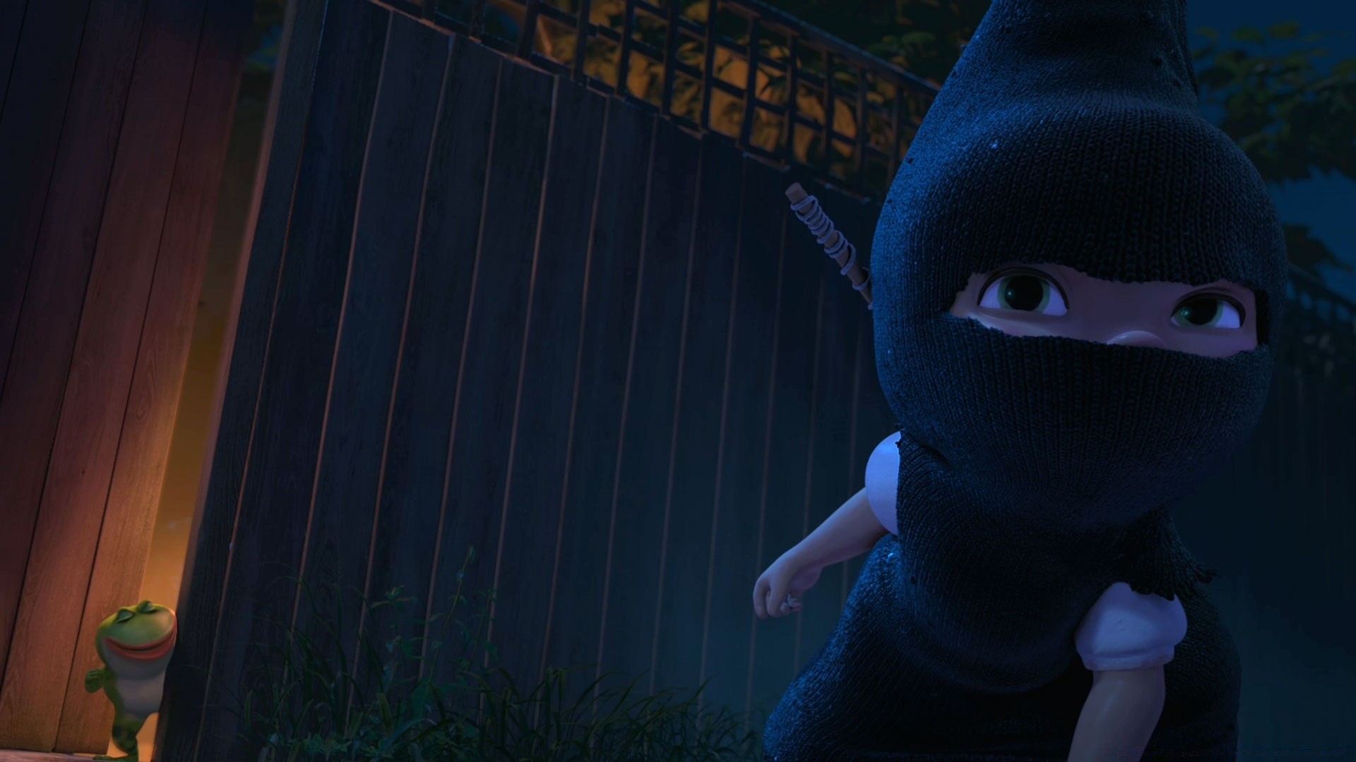 Siyah bir arka plana karşı bir kız ve bir kurbağa