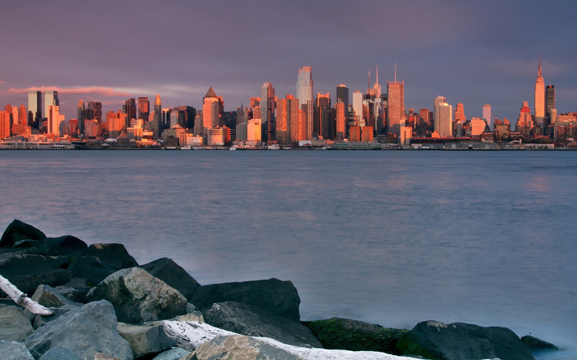 Pembe gökyüzünün arka planına karşı Amerikan şehri
