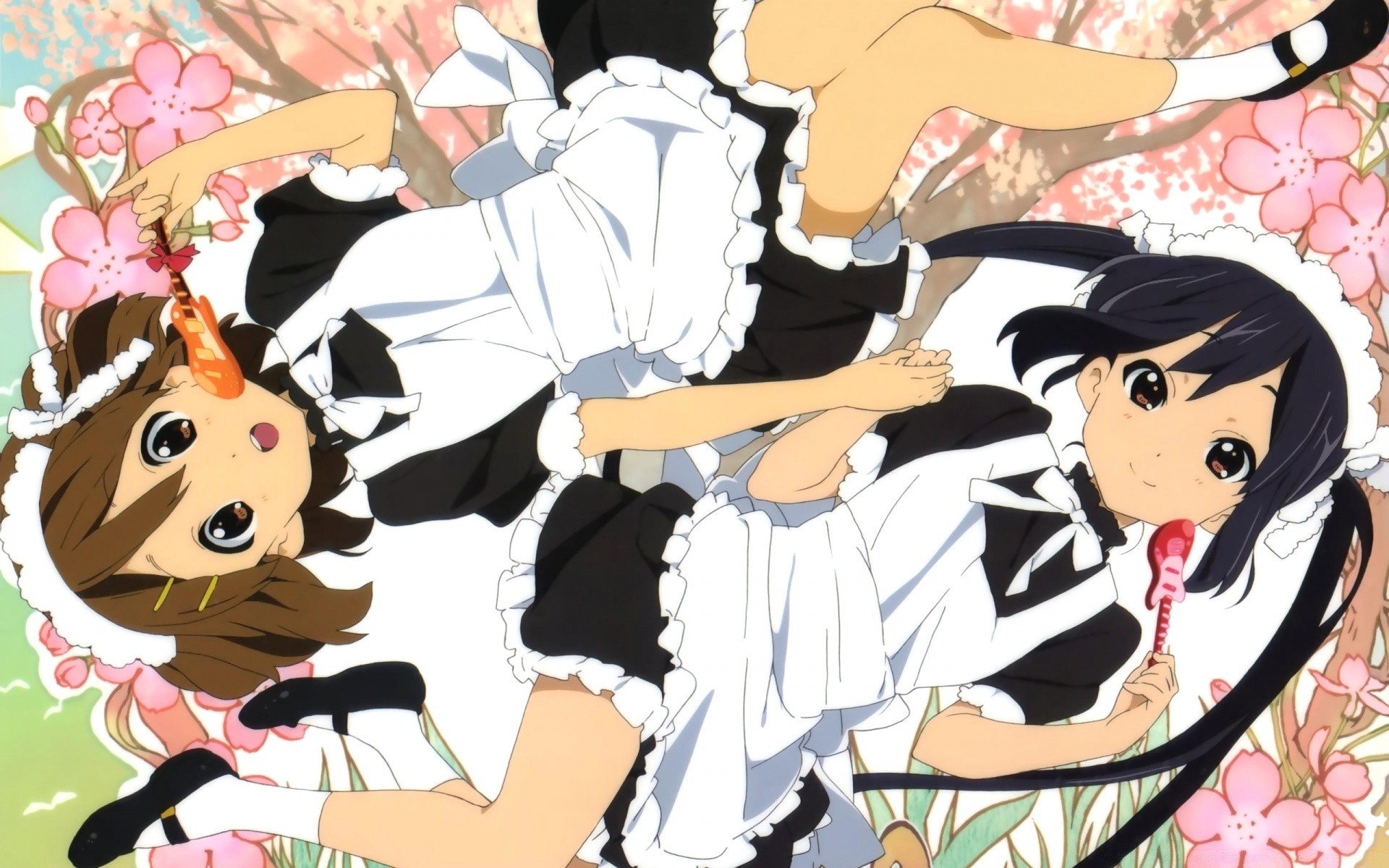 Çiçeklerin arasında çimenlerin içinde oturan anime kahramanı, fırçalar, paletler ve boyalarla, yanında kırmızı bir tramvay var