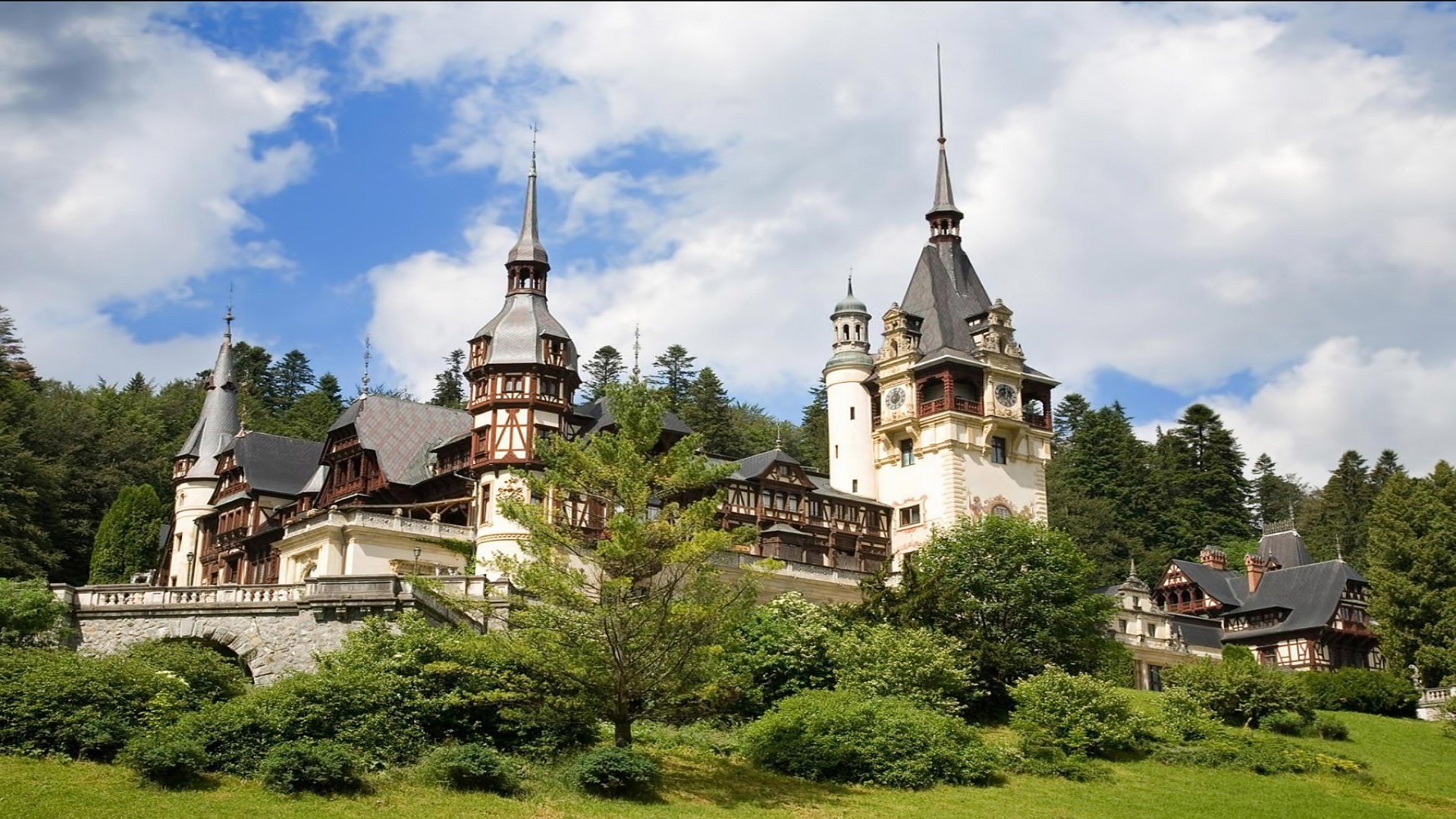Güzel mimari, kuleli büyük ev, güzel şehir