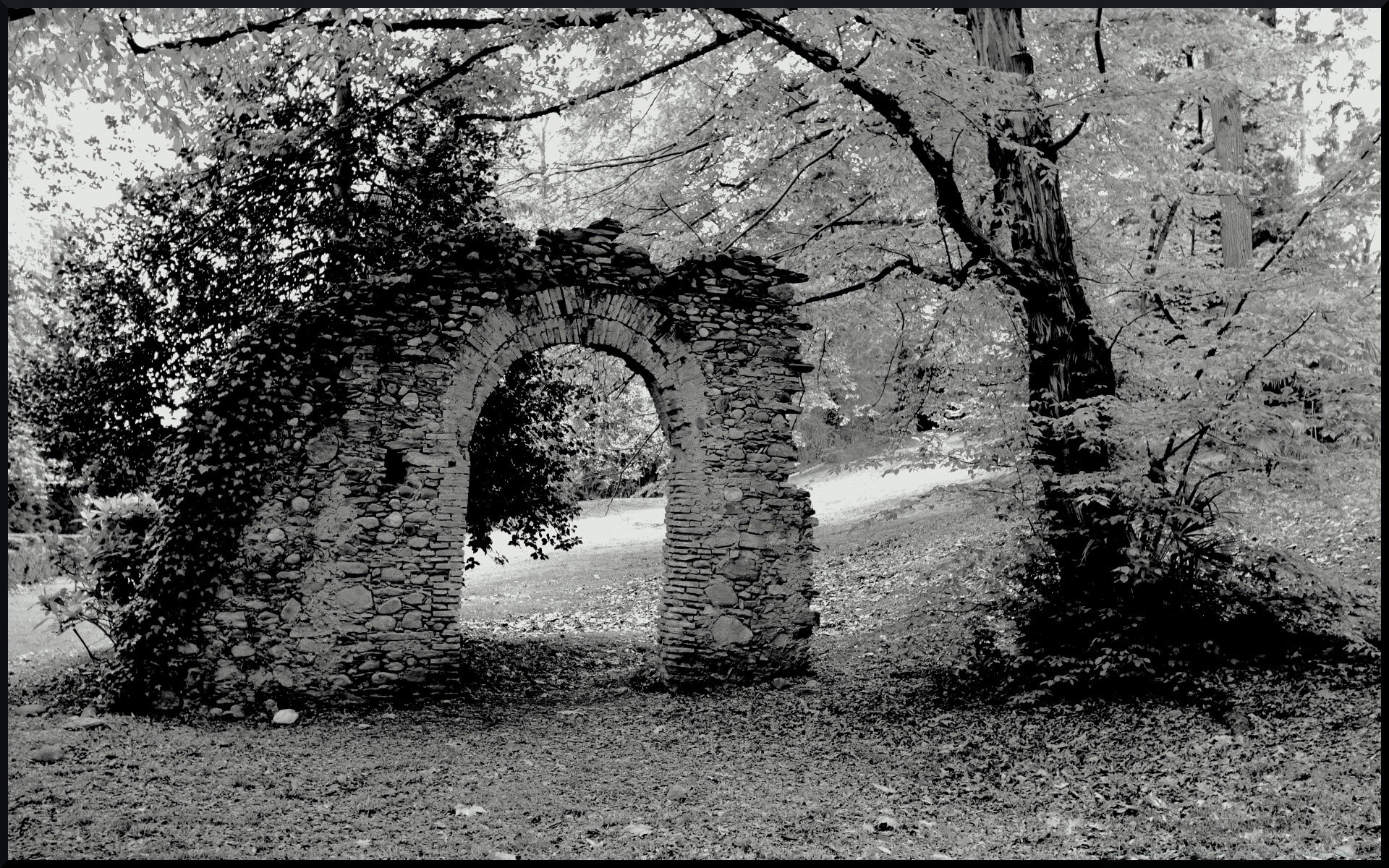 Eski kalenin siyah ve beyaz fotoğrafı