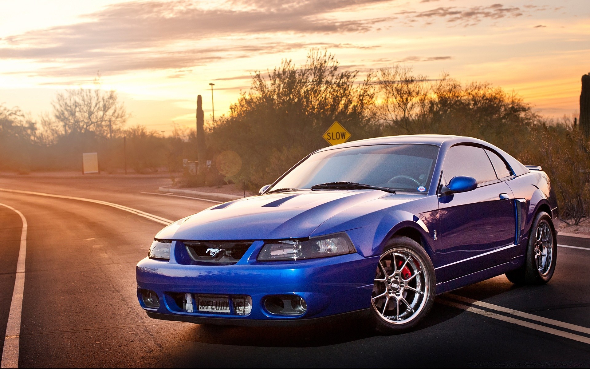 Dağların zemininde krom jantlara sahip mavi bir üstü açılır araba