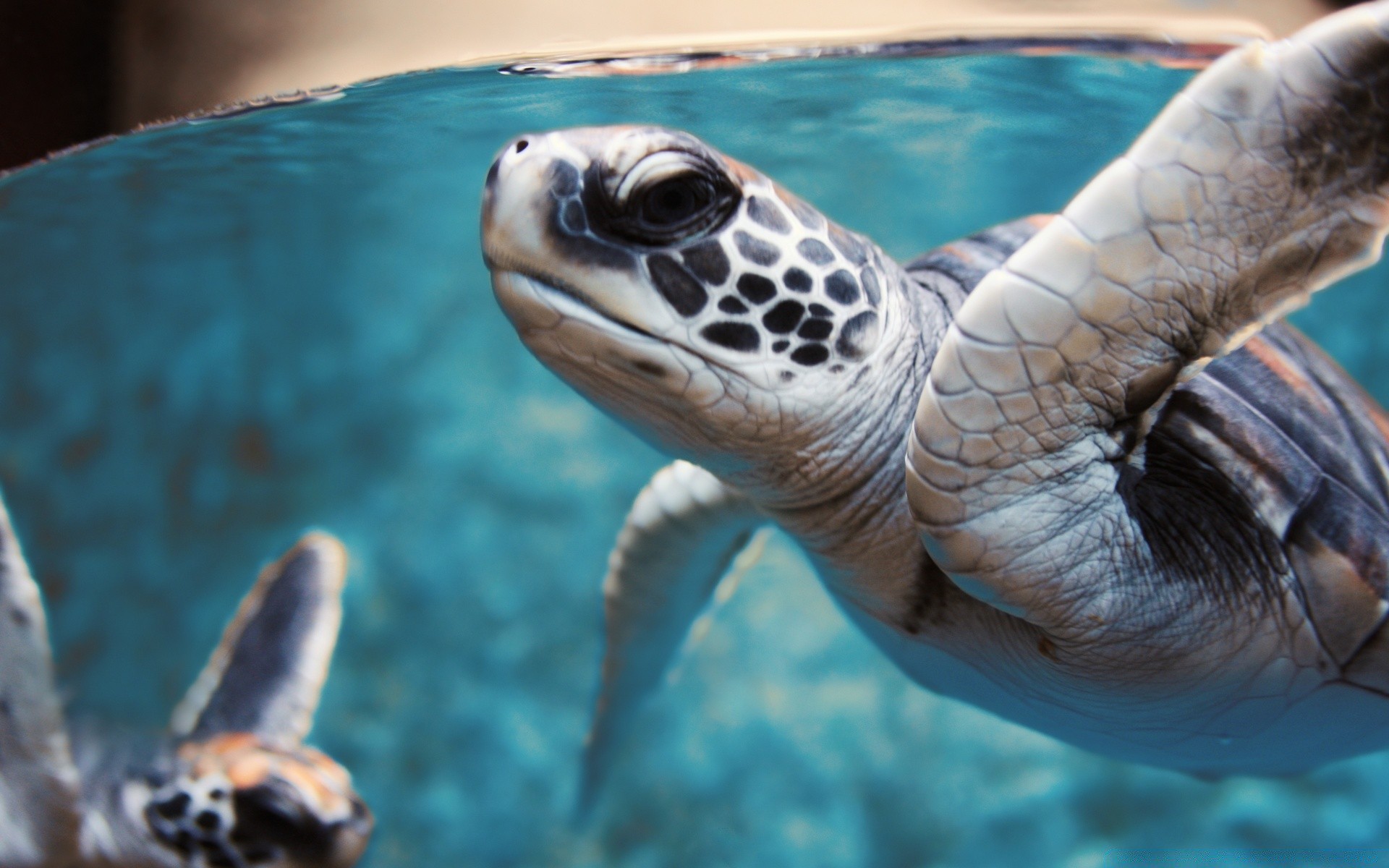 Turkuaz bir arka plan üzerinde deniz kaplumbağası