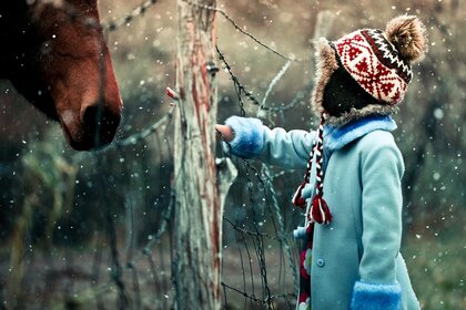 Tüylü bir dalın altında eşarplı kızıl saçlı kız