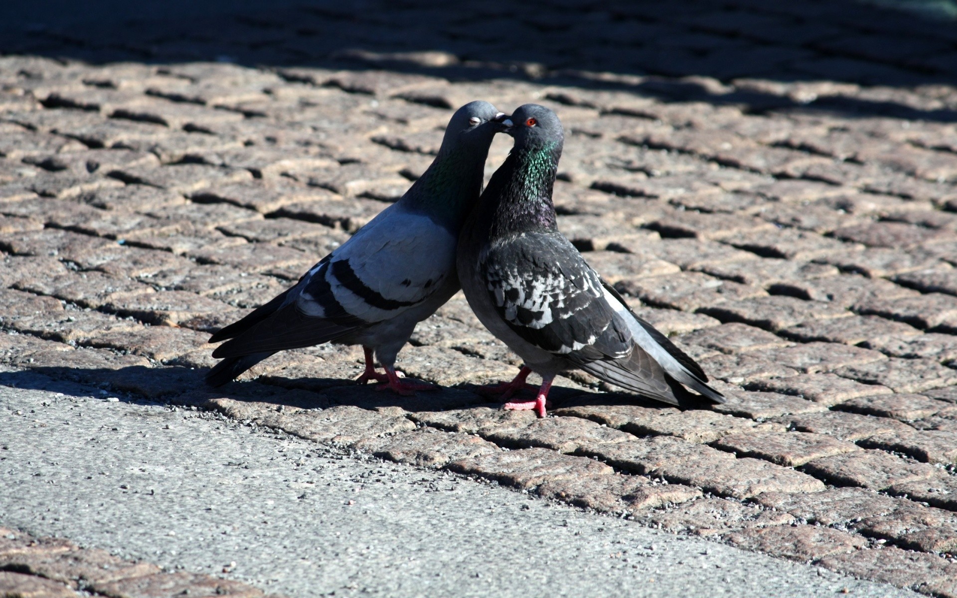 Güneşli bir kaldırımda iki güvercin