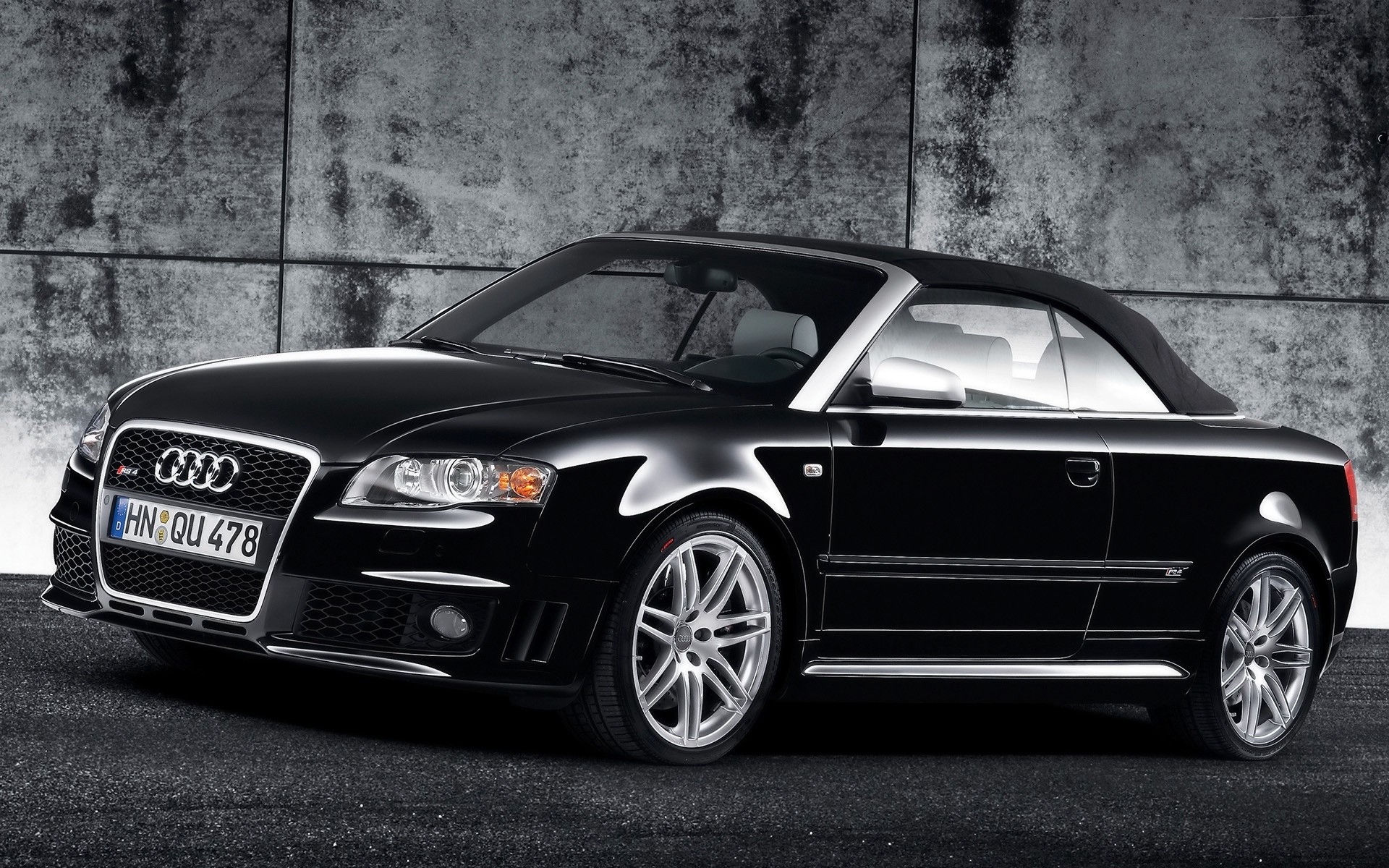Siyah Audi araba beton duvarın arka planında arkadan görünüm