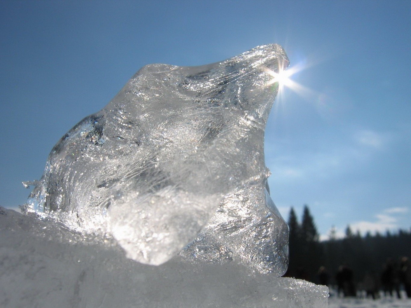 Karlı dağların arka planına karşı karla kaplı buz kütleleri