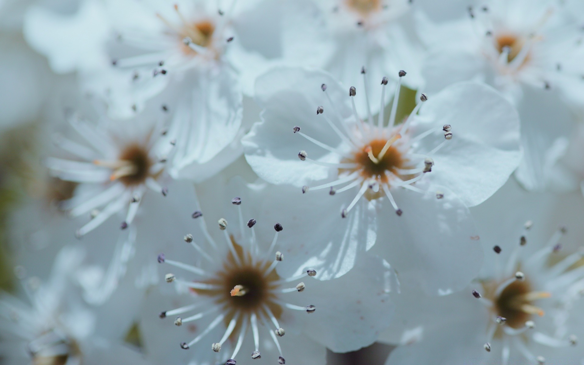 Gökyüzünün arka planında bulanık kiraz çiçekleri