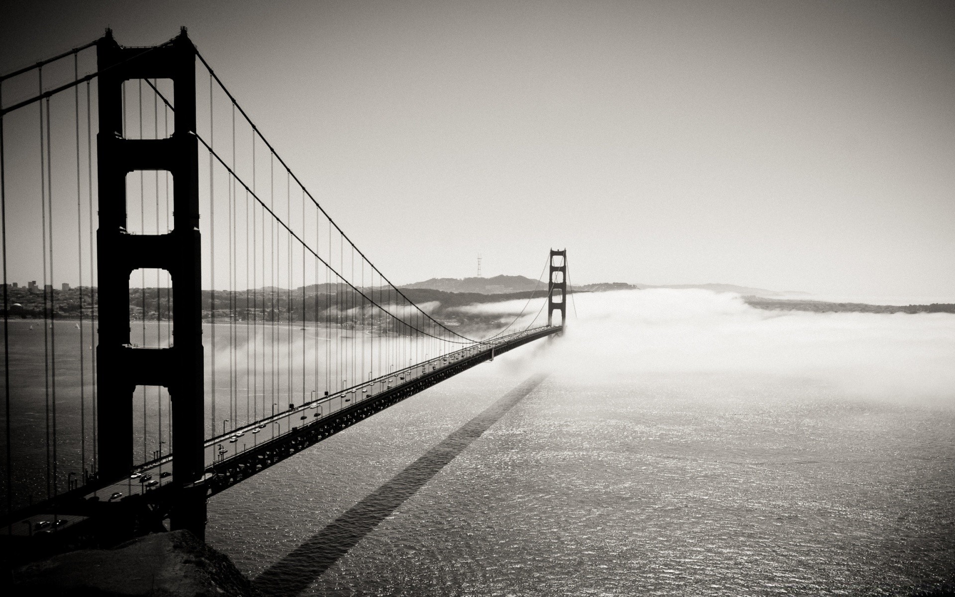 Nehrin karşısındaki köprünün siyah beyaz fotoğrafı