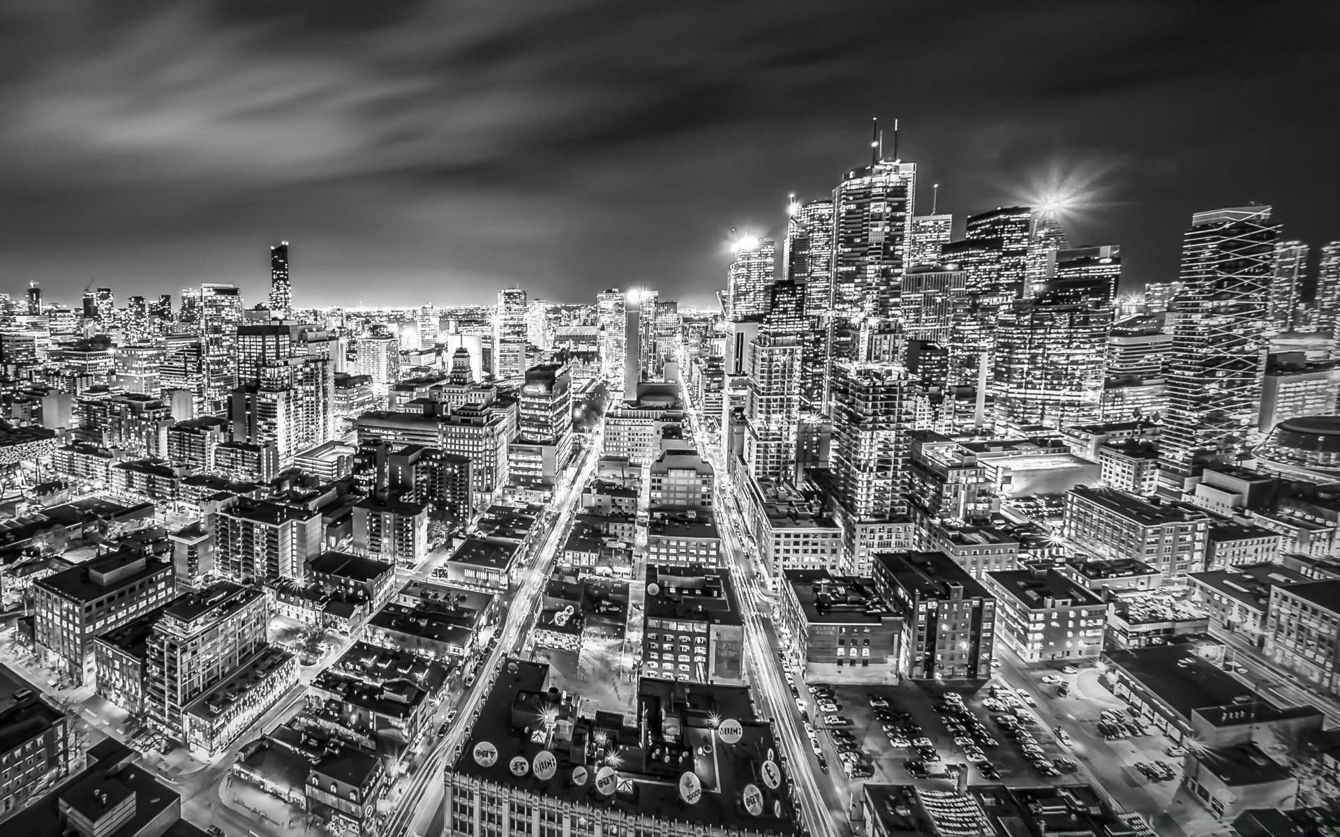 Büyük bir metropolün siyah beyaz fotoğrafı