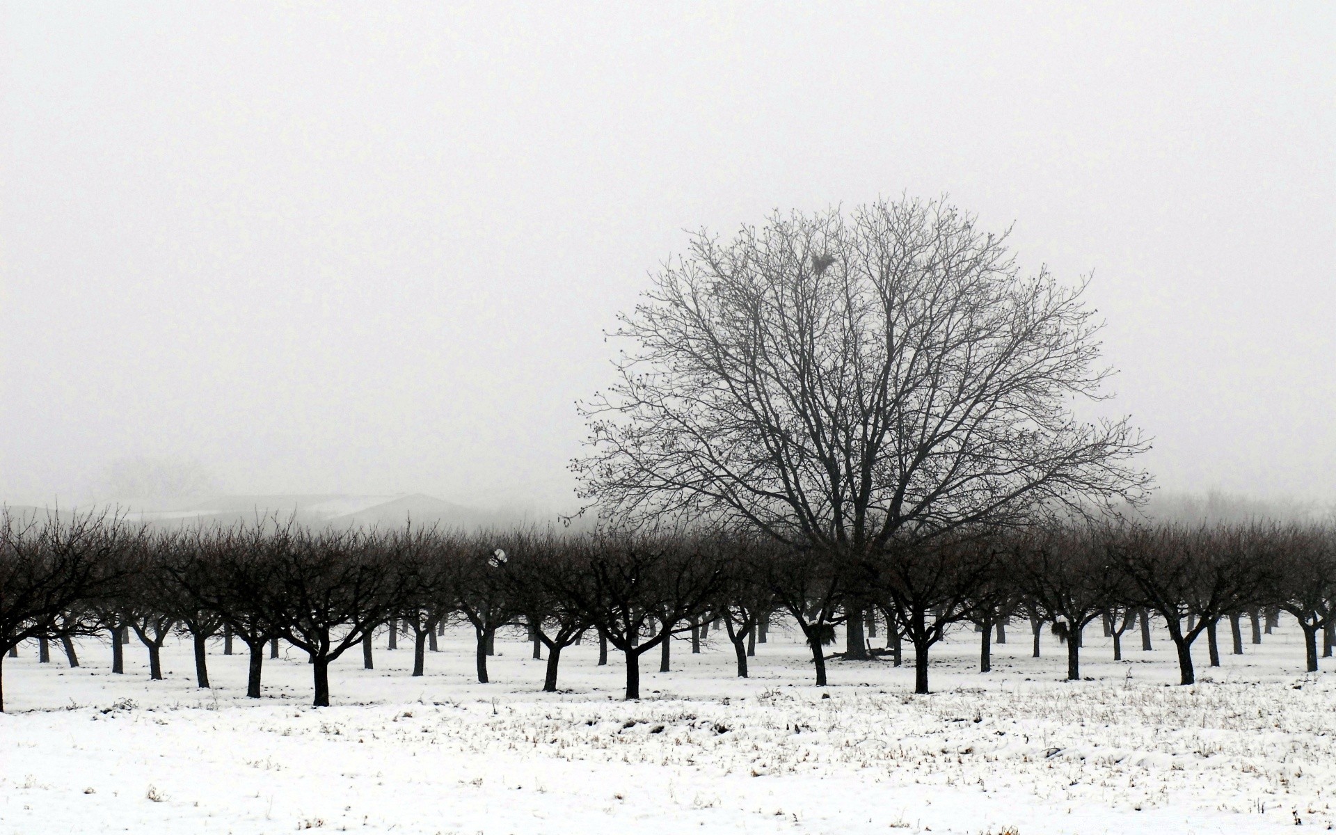 Kışın ağaçlar siyah beyaz manzara