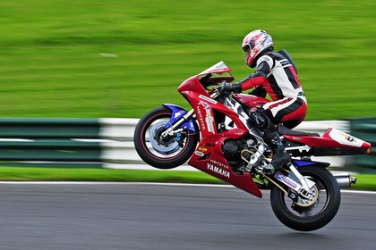 Yeşil bir arka plan üzerinde bir motosiklet üzerinde yarışçı