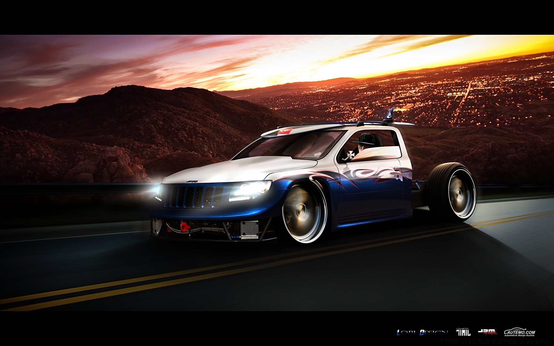 Gün batımında asfaltta spor araba