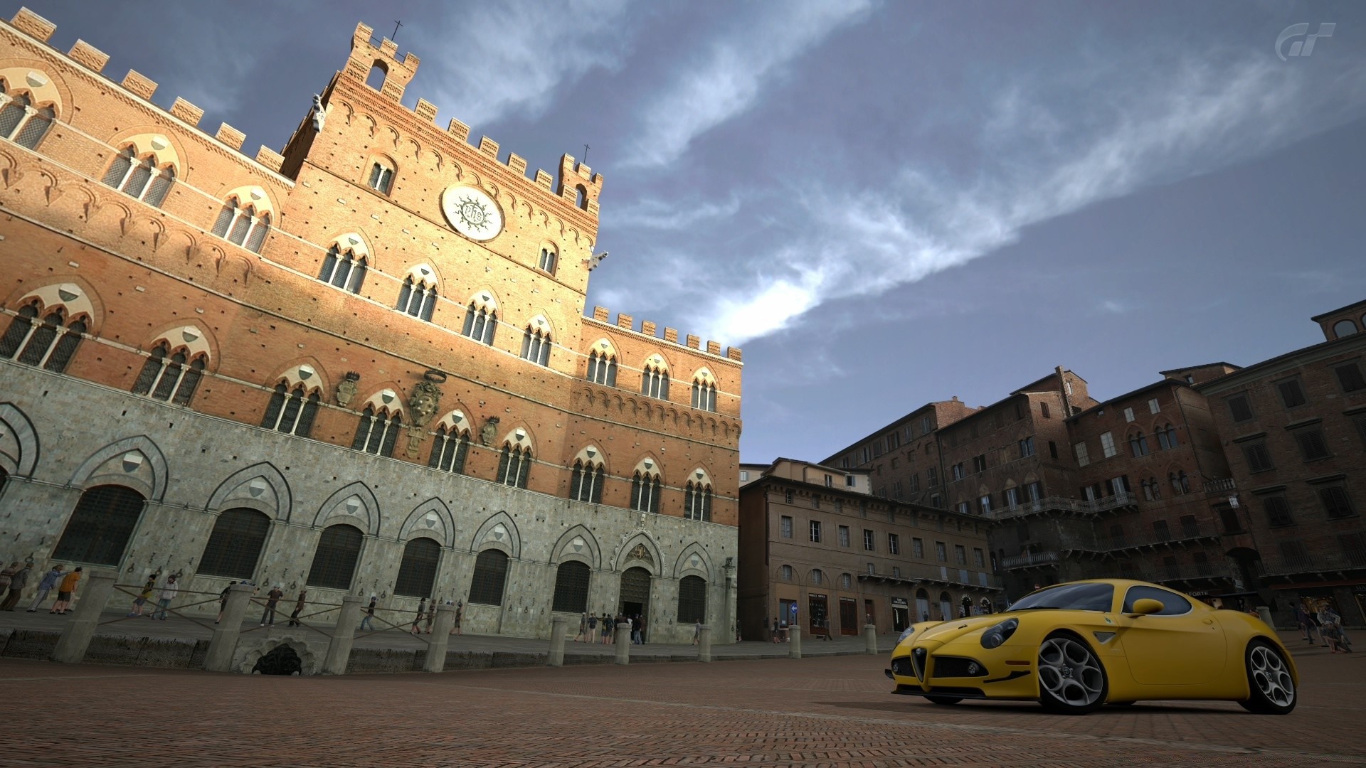 Sarı spor arabası açık havada park edildi