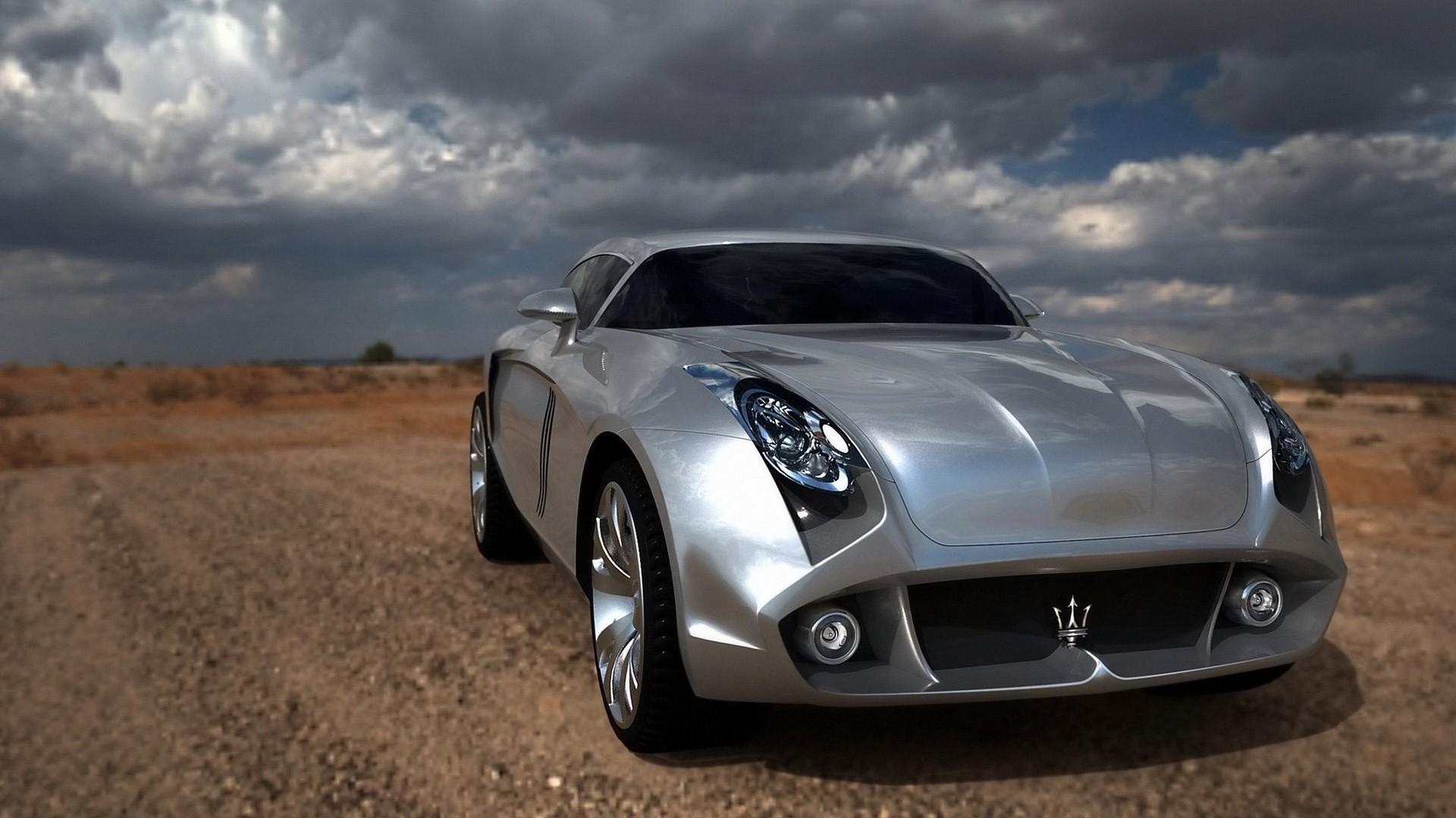 Çölde gri spor arabası