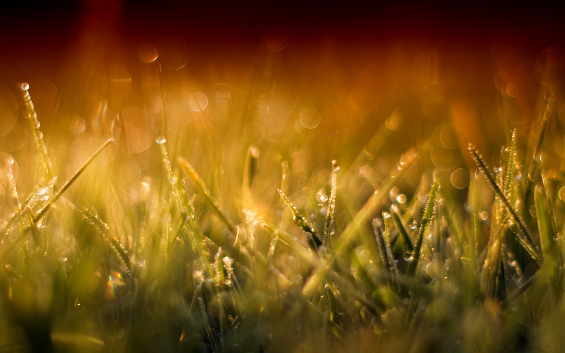 Şafakta çiyle kaplı çimenler