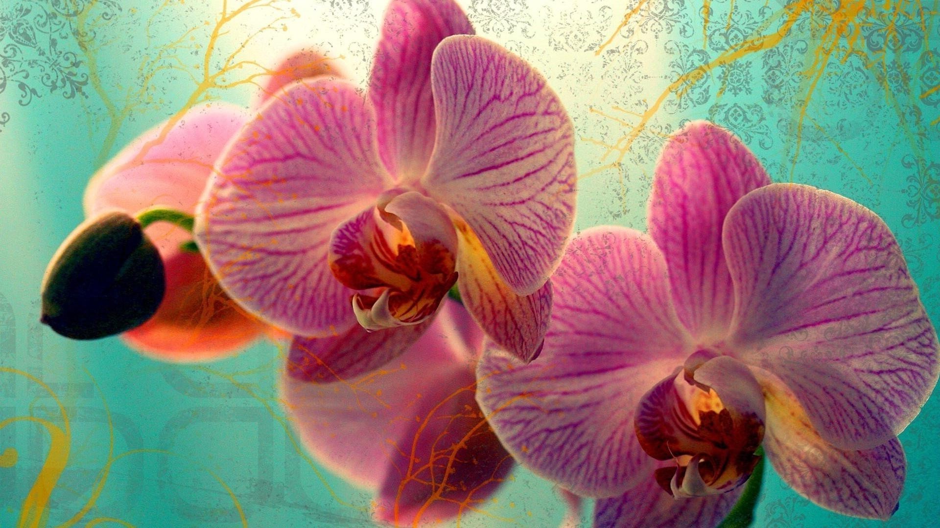 Mavi bir arka plan üzerinde pembe orkide