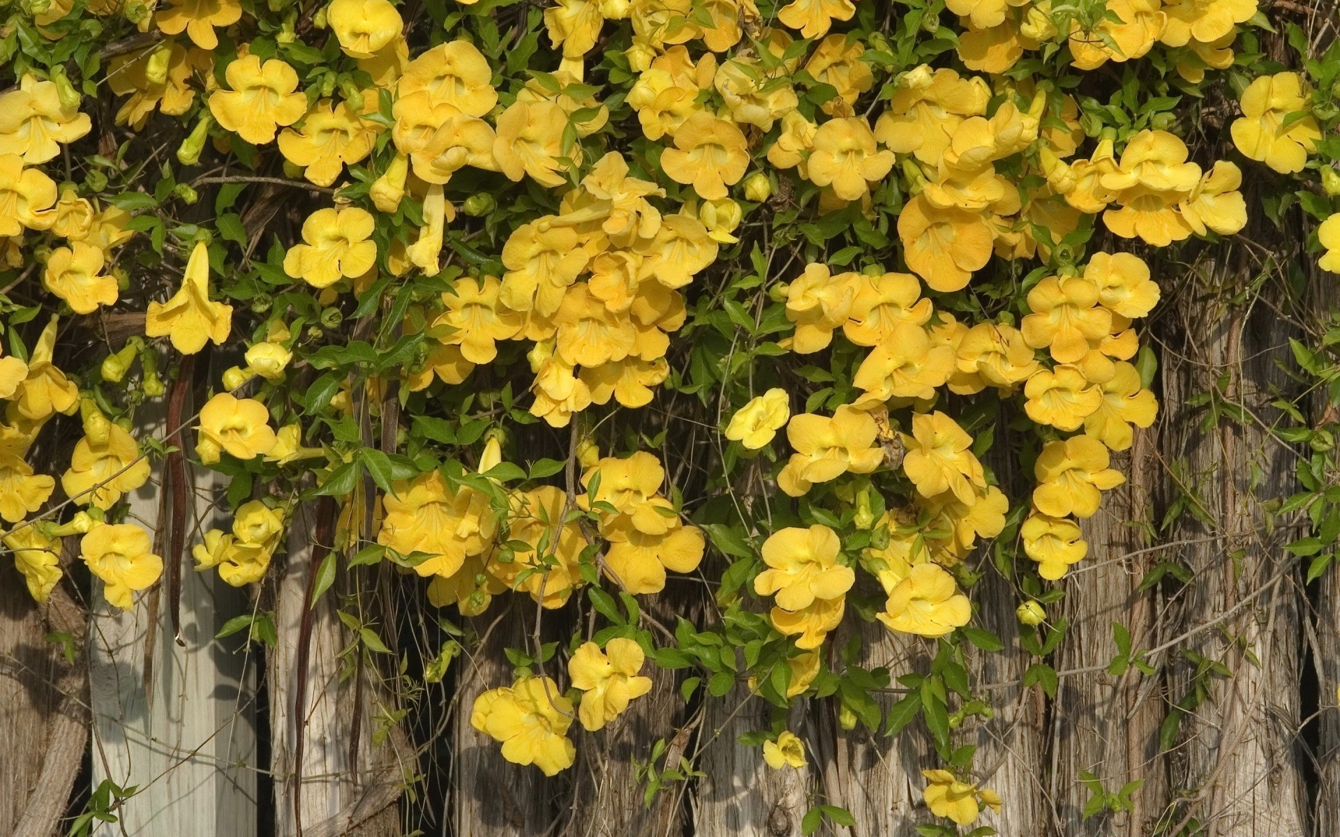 Duvarda sürünen sarı çiçekler