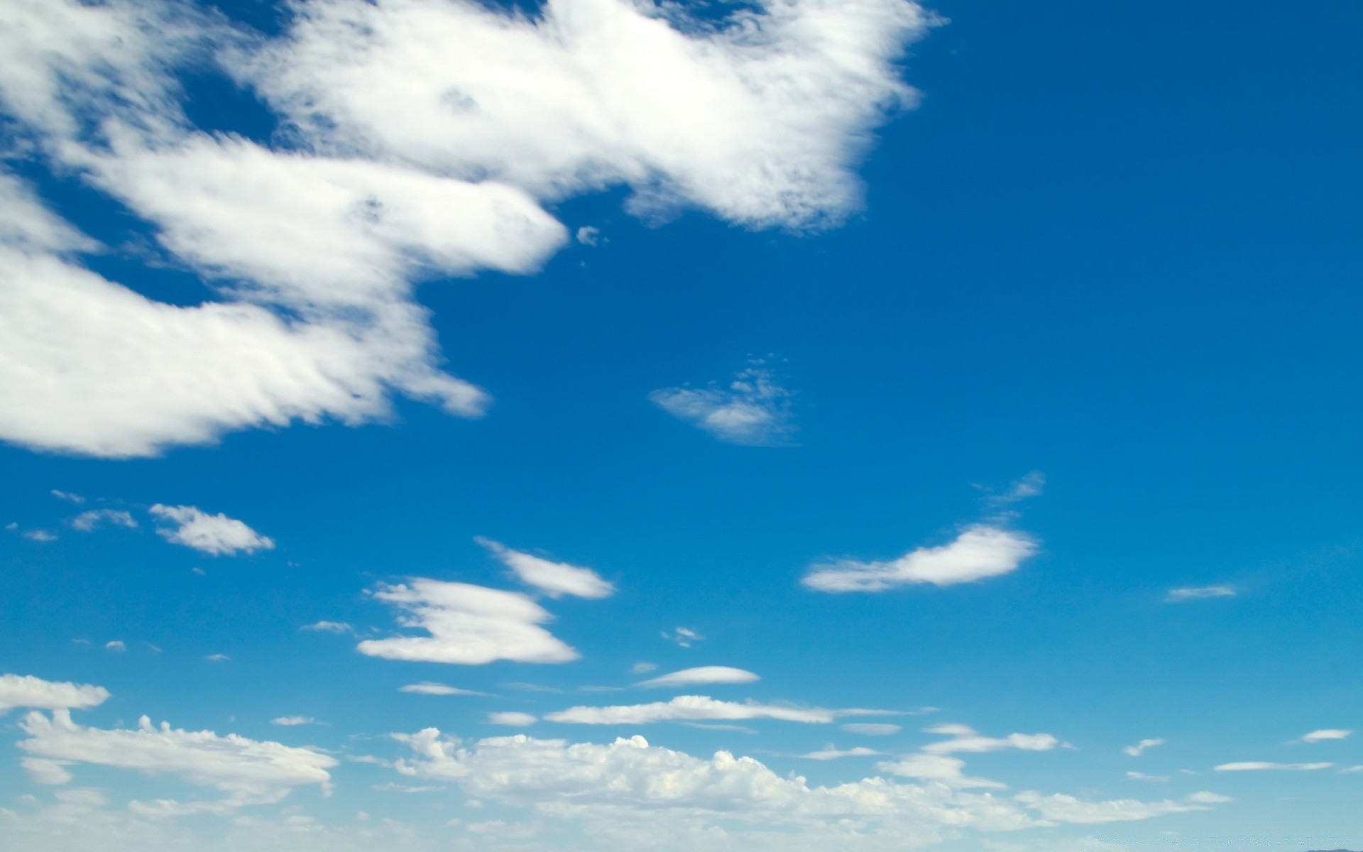 Bulutlar. Mavi gökyüzü. Gökyüzünde bir kuş