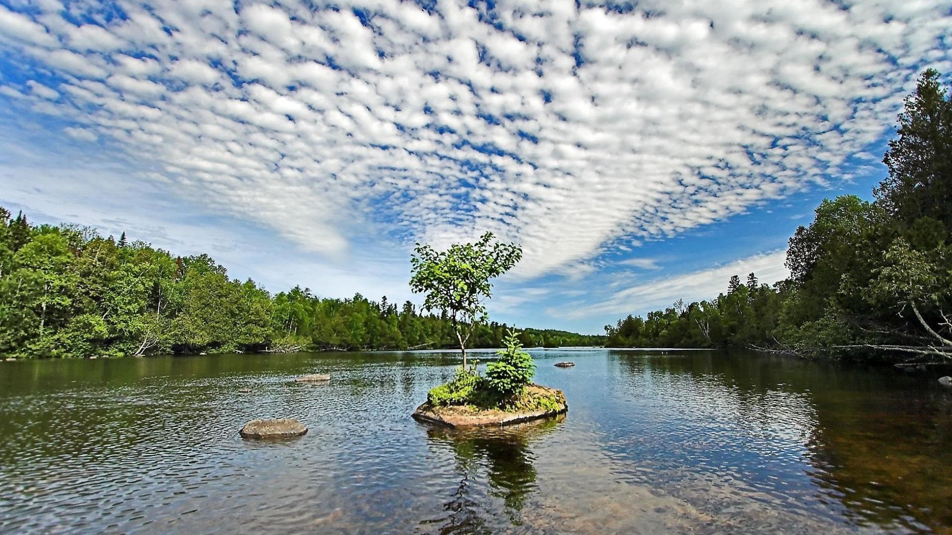 Sonbahar bulutlu gökyüzünün arka planına karşı gökkuşağı