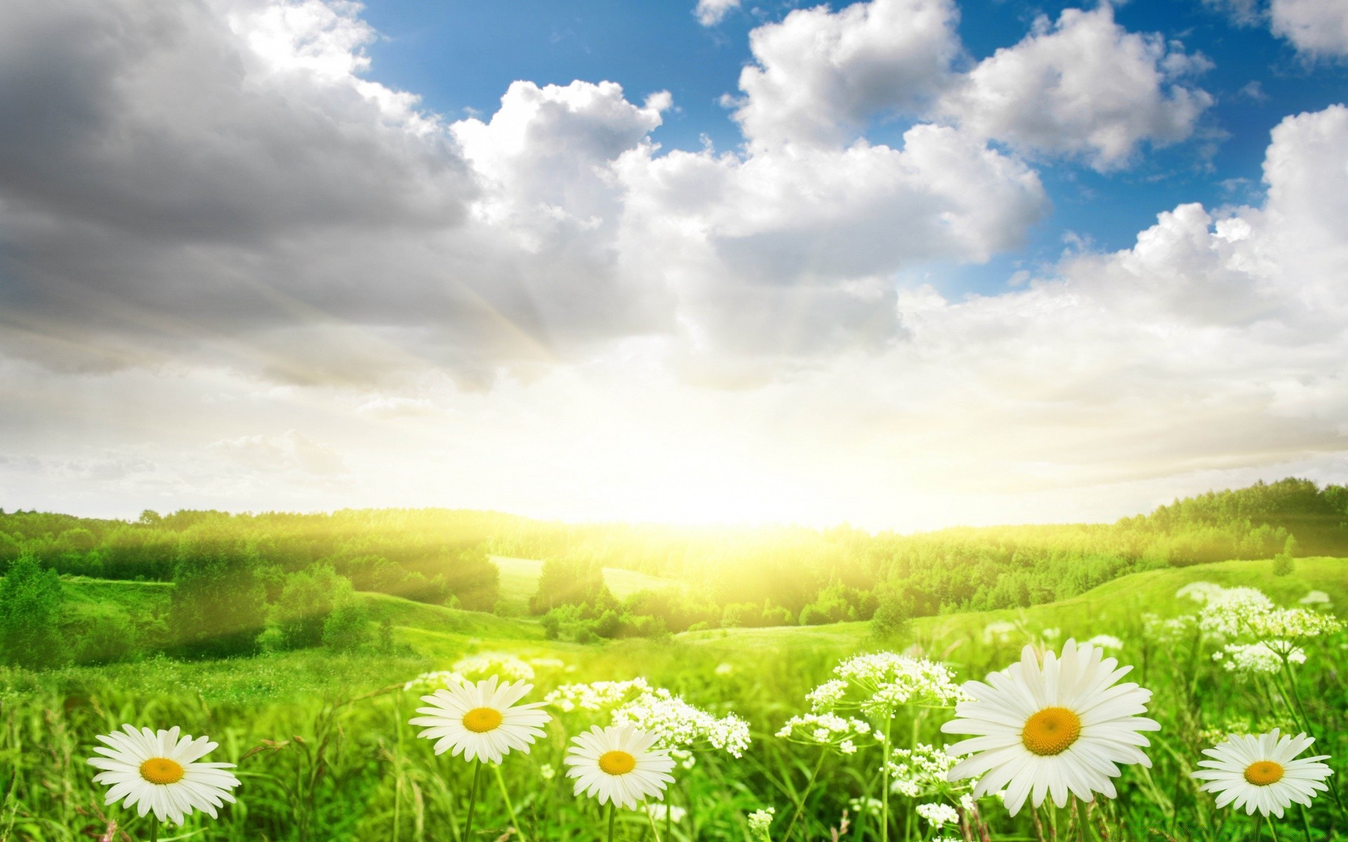 Bulutlu gökyüzünün altındaki papatya tarlası