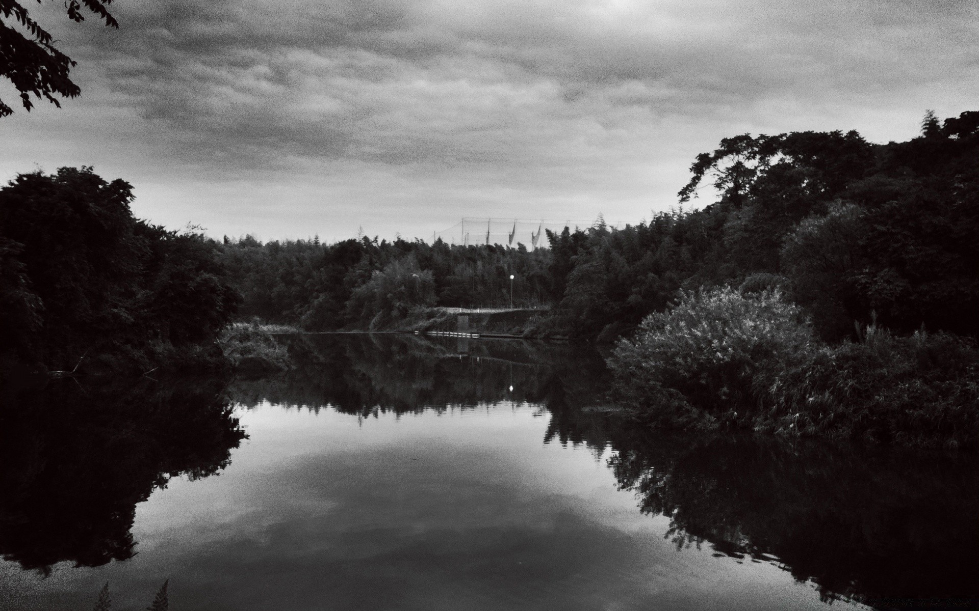 Ormanlardaki göl şelale bulutlu gökyüzü