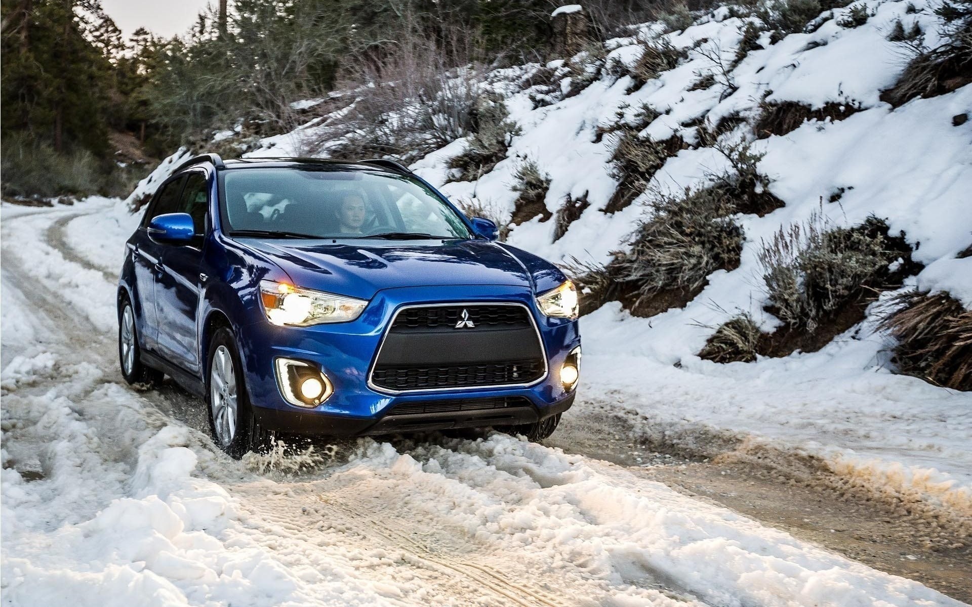 Karlı bir yolda ilerleyen bir araba
