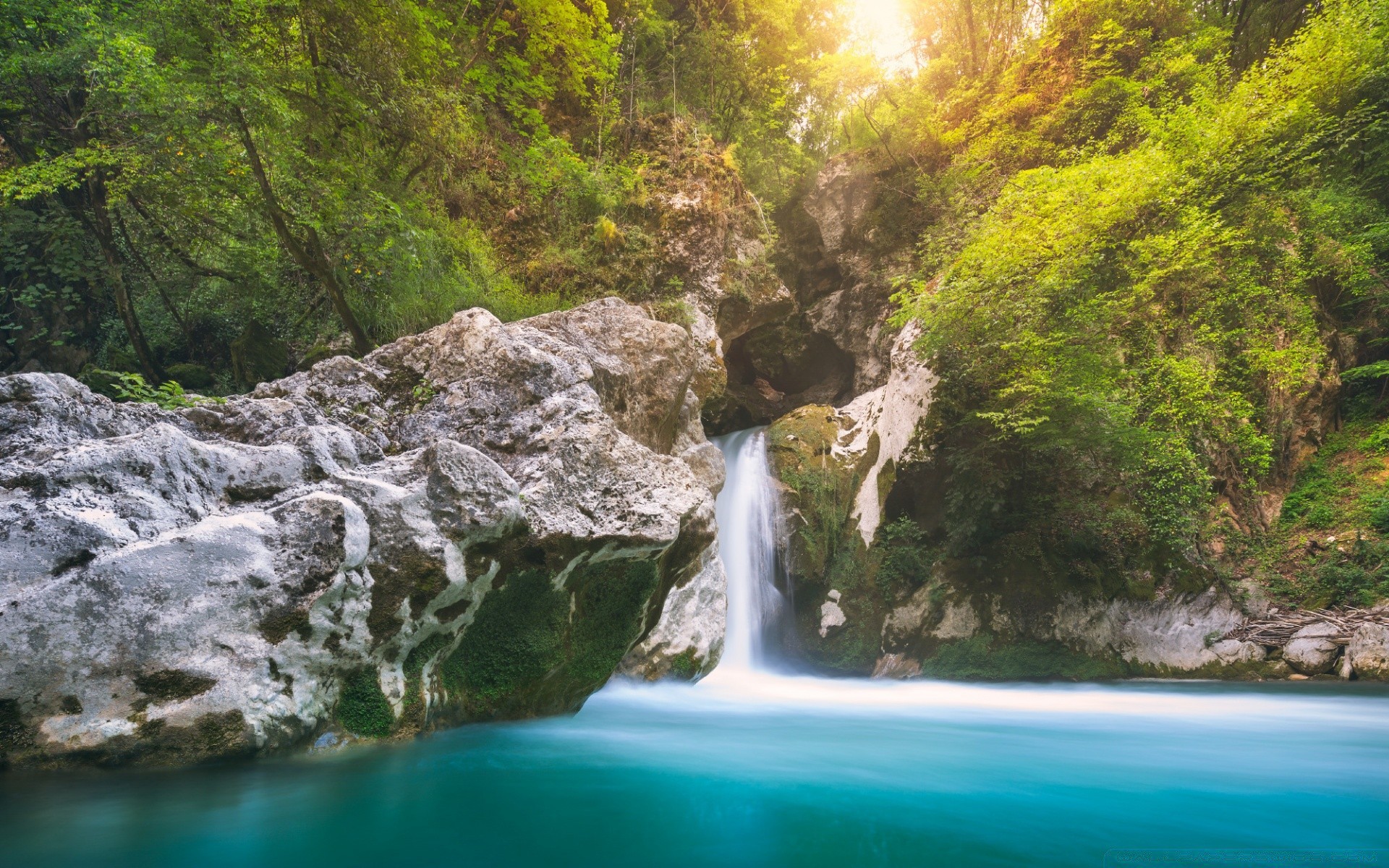 Adadaki güzel ağaçlar ve yeşil gökyüzü