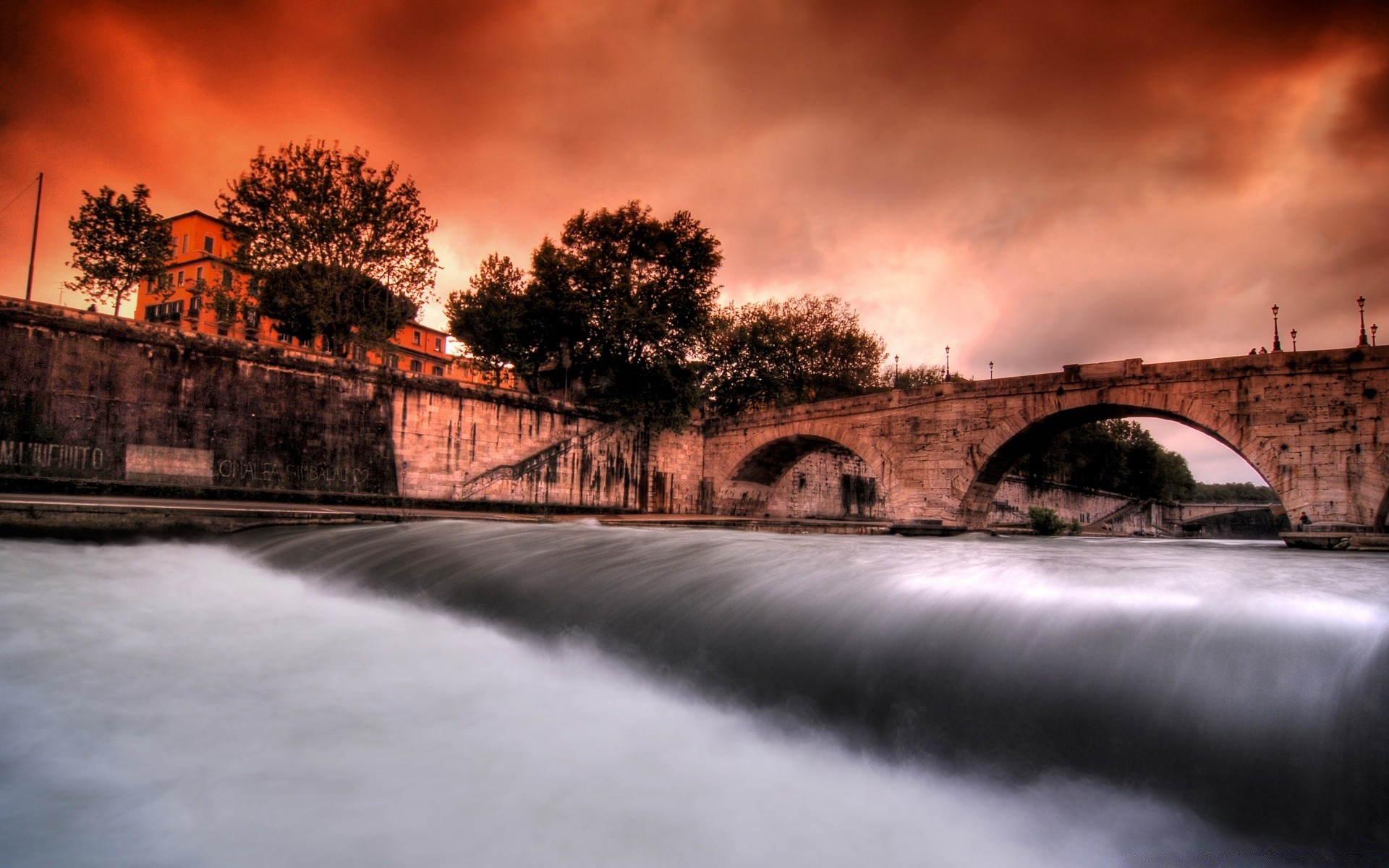 Şelale ile nehrin karşısındaki Avrupa kemerli köprü