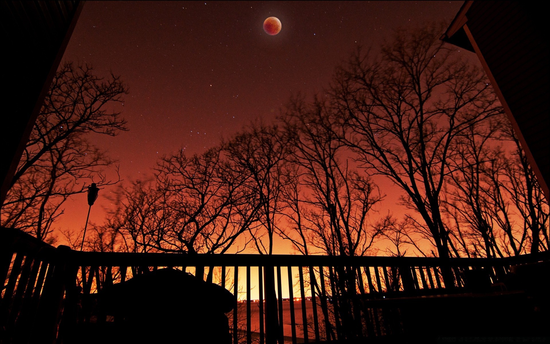 Gün batımı ve kırmızı ay ile doğanın görünümü