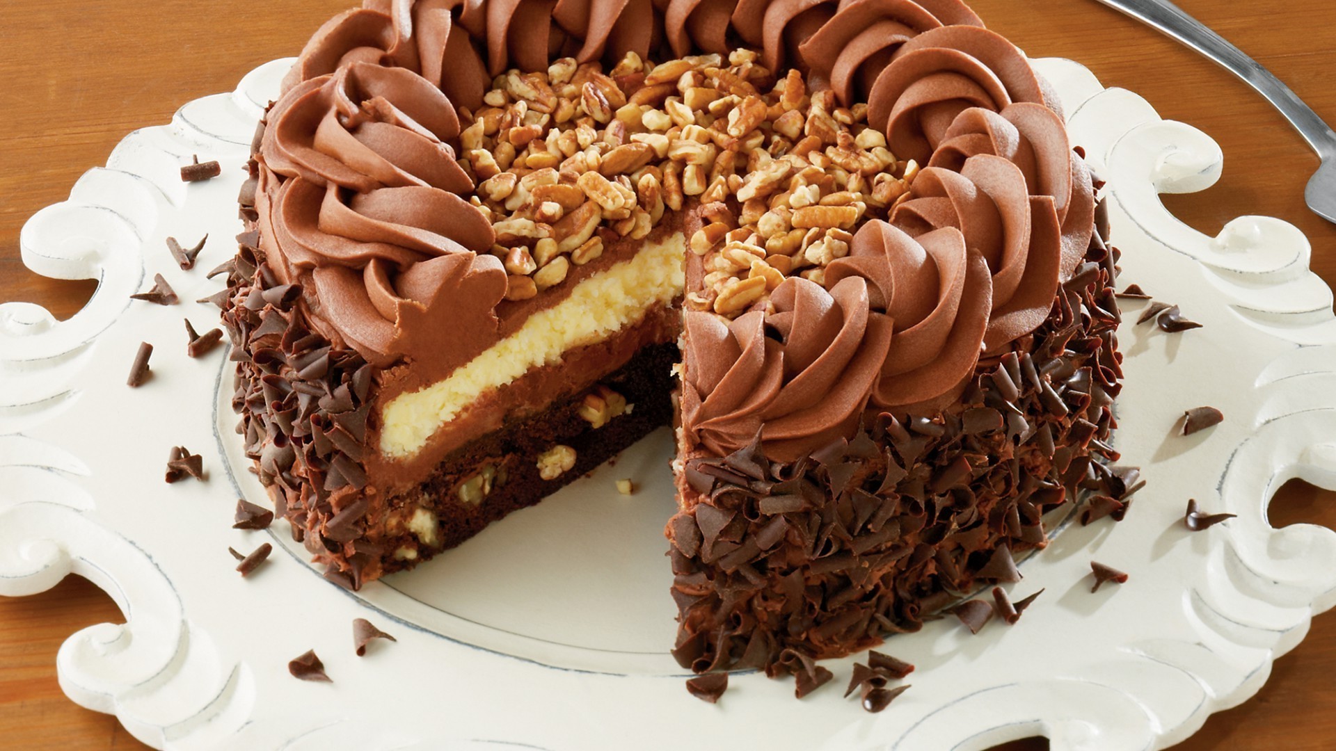 Kesilmiş bir parça ile tepsiye pasta