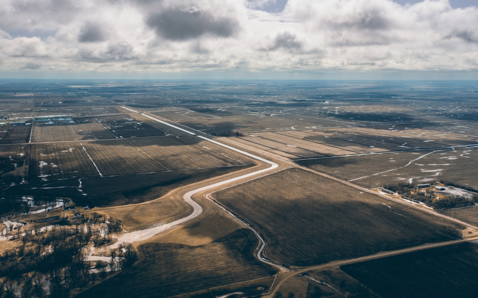 Uçaktan yollar ve tarlalar ile yeryüzünün görünümü
