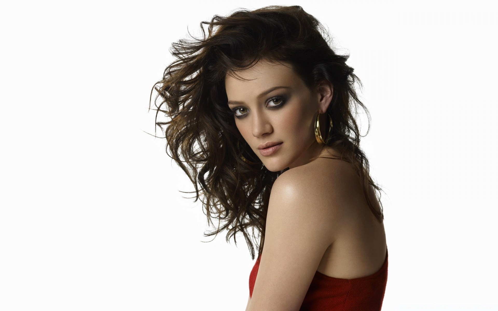 Beyaz bir arka plan üzerinde kırmızı elbiseli aktris