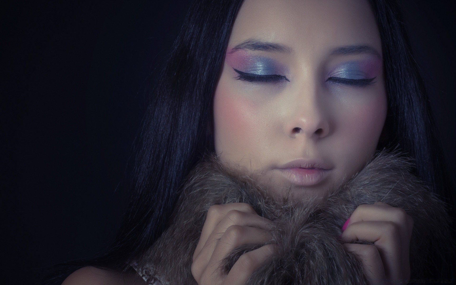 Parlak göz makyajında bir kızın portre çekimi