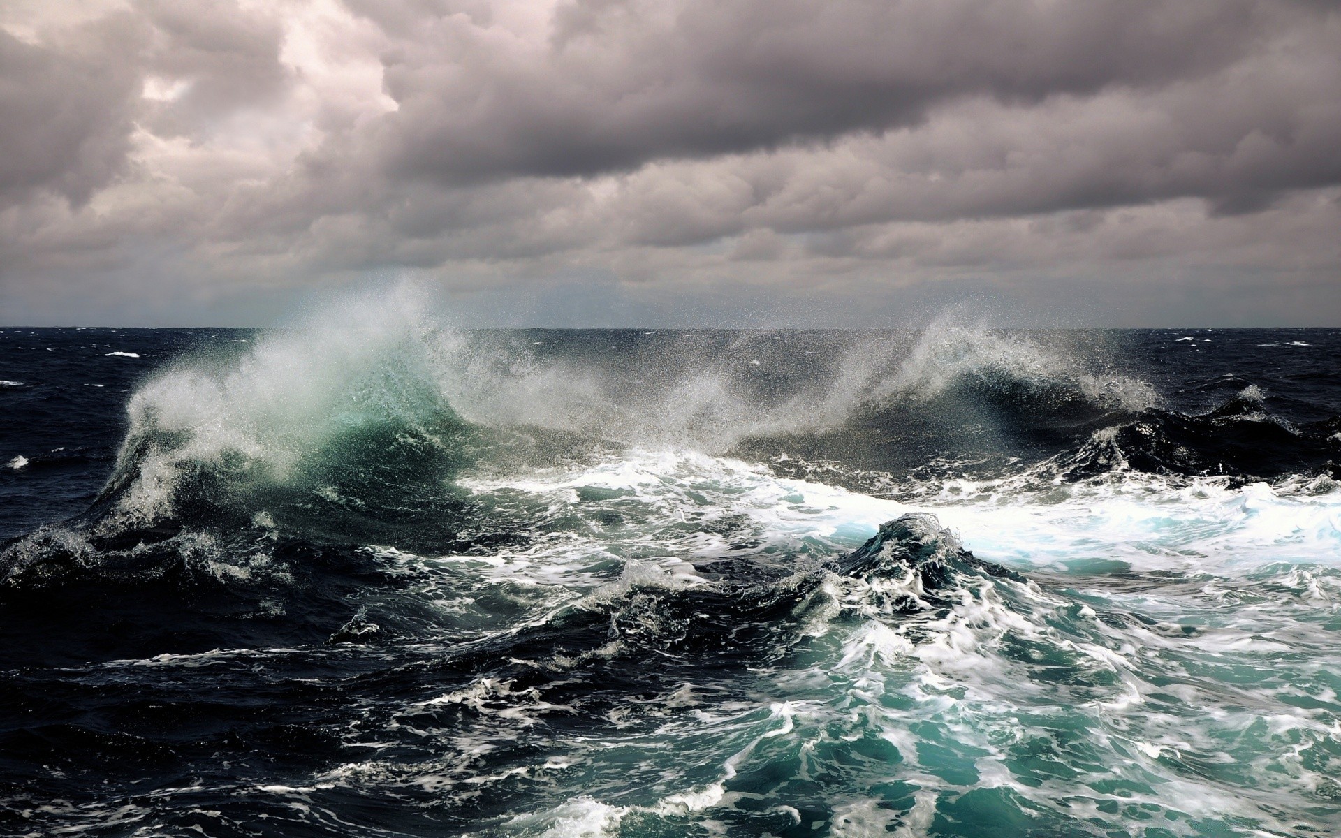 Denizin dalgalarının üzerindeki kasvetli gökyüzü