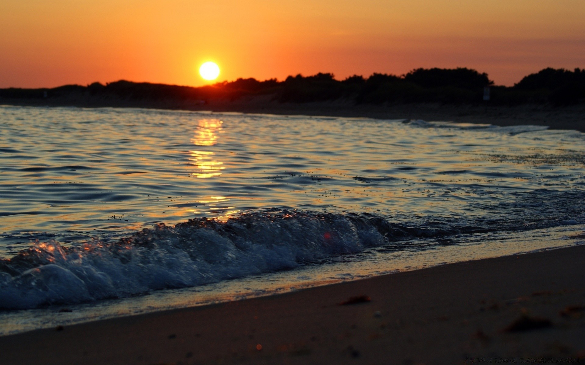 Köpüklü deniz dalgalarının üzerinde gün batımı