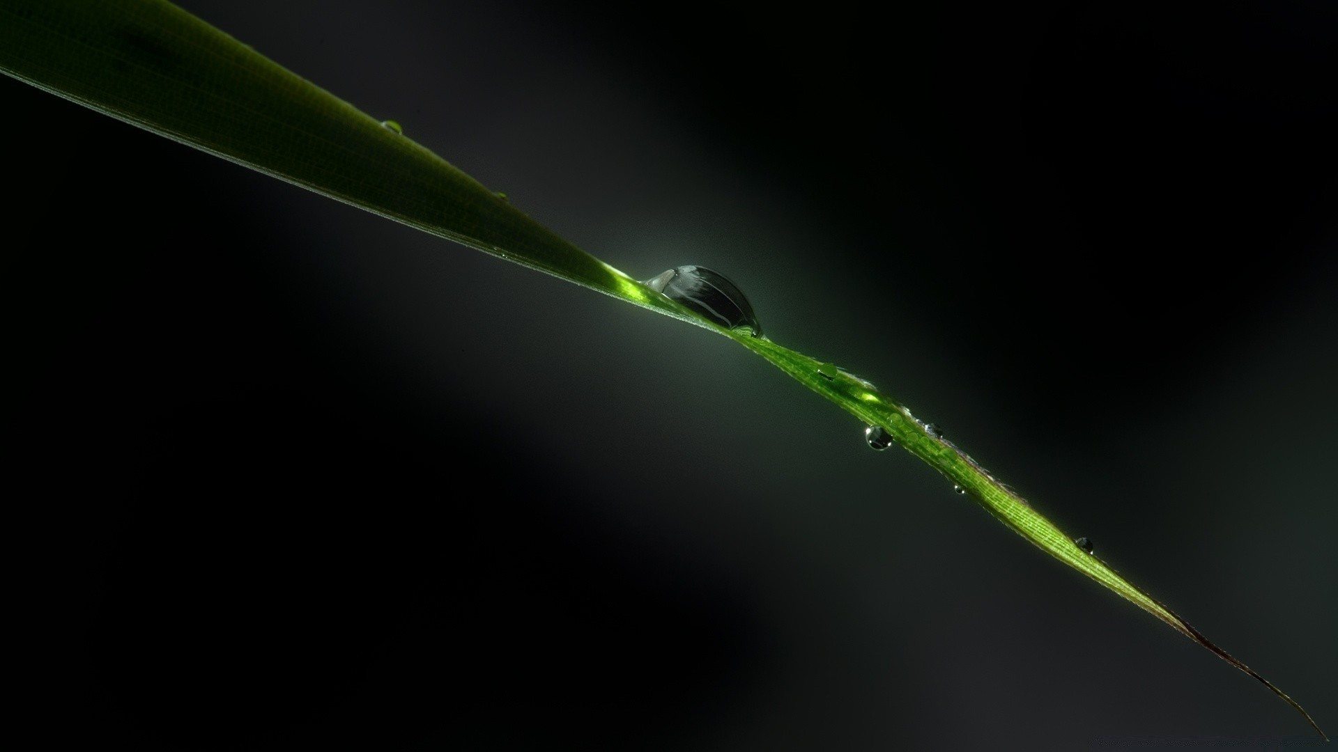 Yaprağın kenarında çiğ damlaları