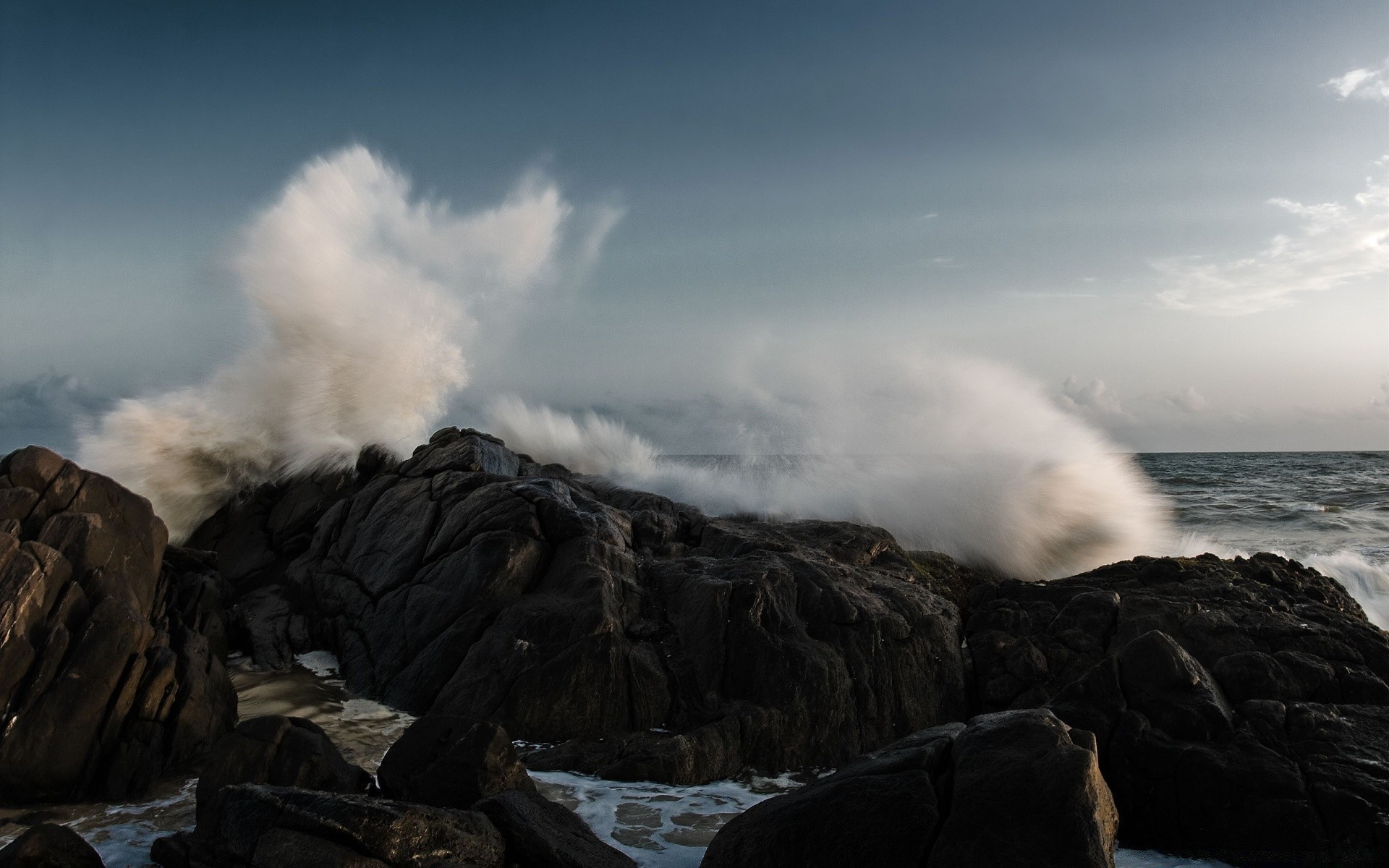 Deniz dalgaları çok fazla sıçrayan kayalara çarpıyor