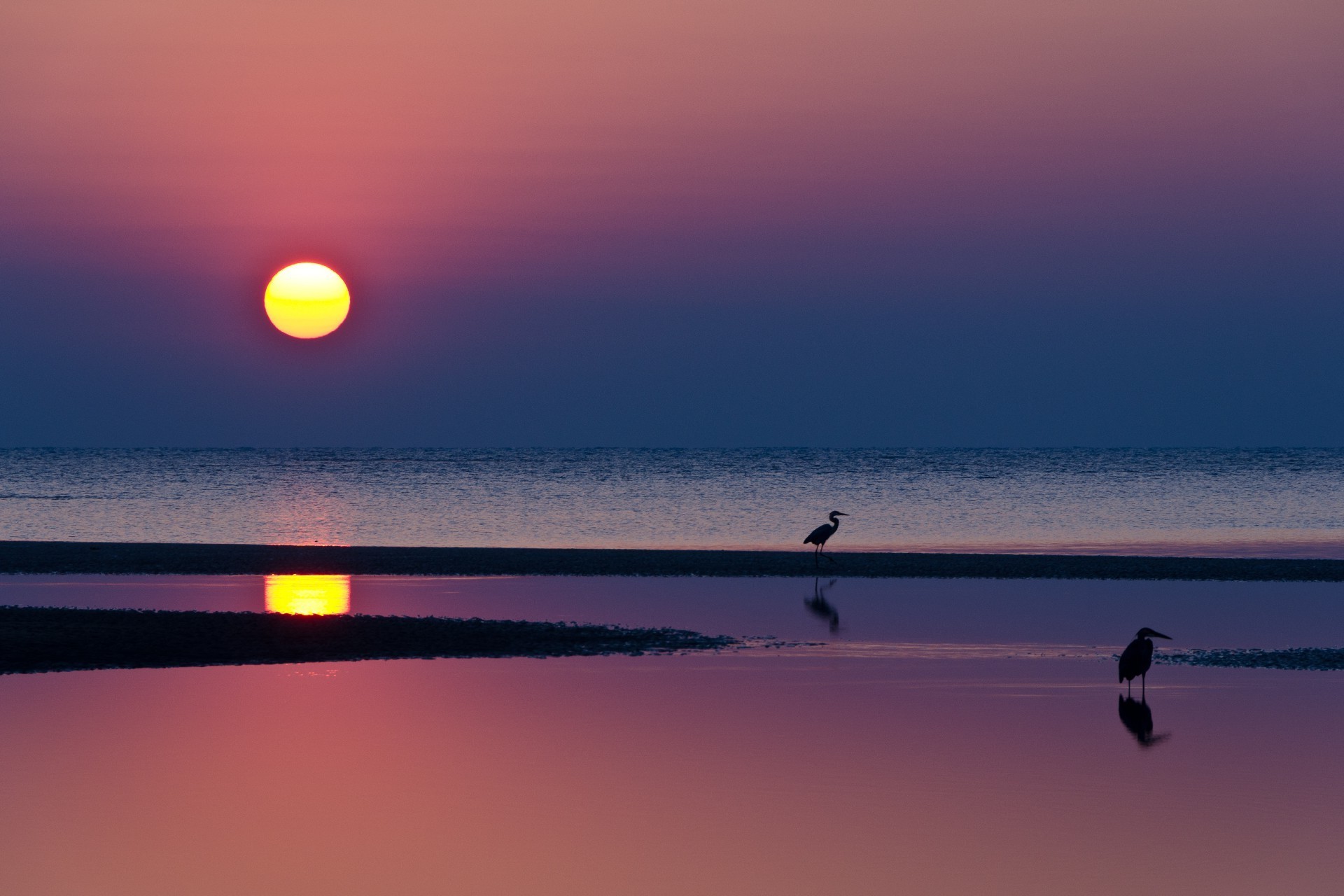 Gün batımında sakin deniz kıyısı
