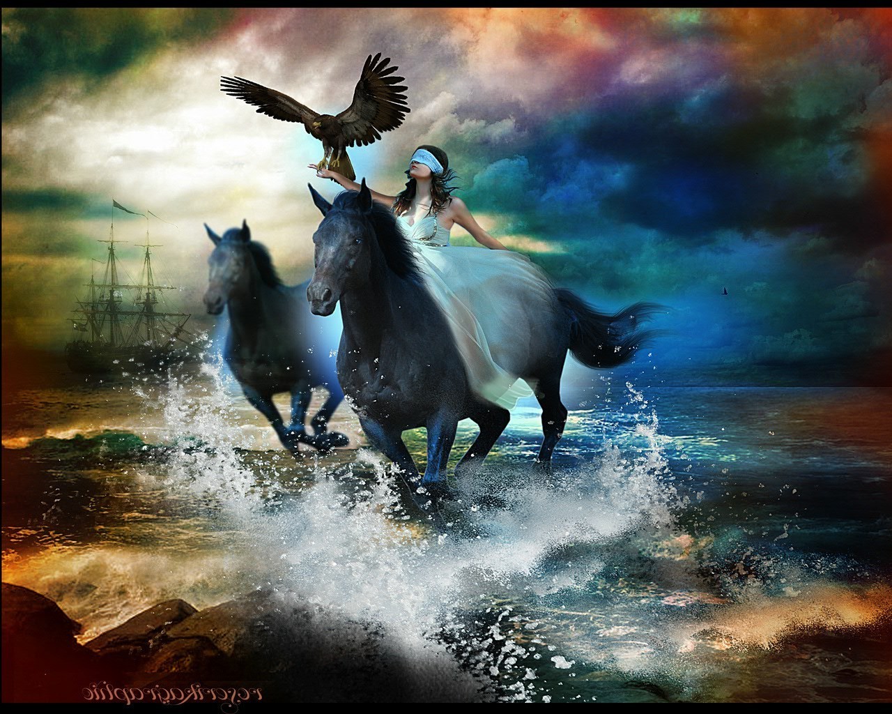 At sırtında bir kuş olan bir kızın resmi