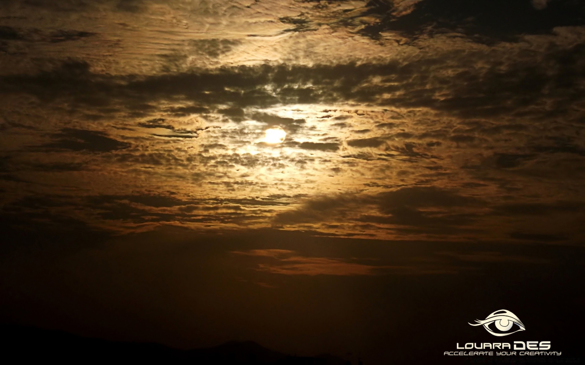 Parlak güneş. Bulutlar. Batış