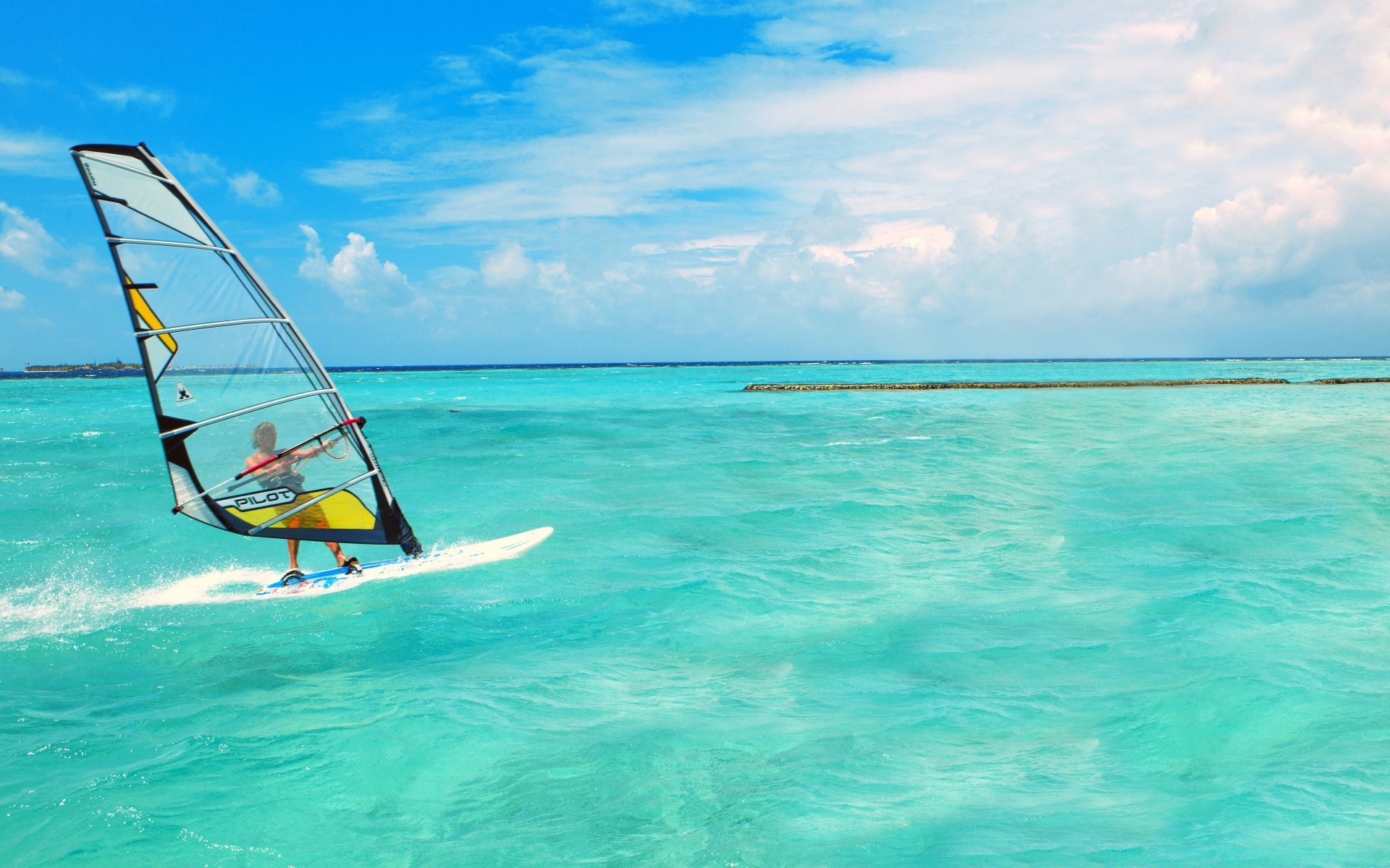 Okyanusun kıyısında yeşil güzel palmiye ağaçları