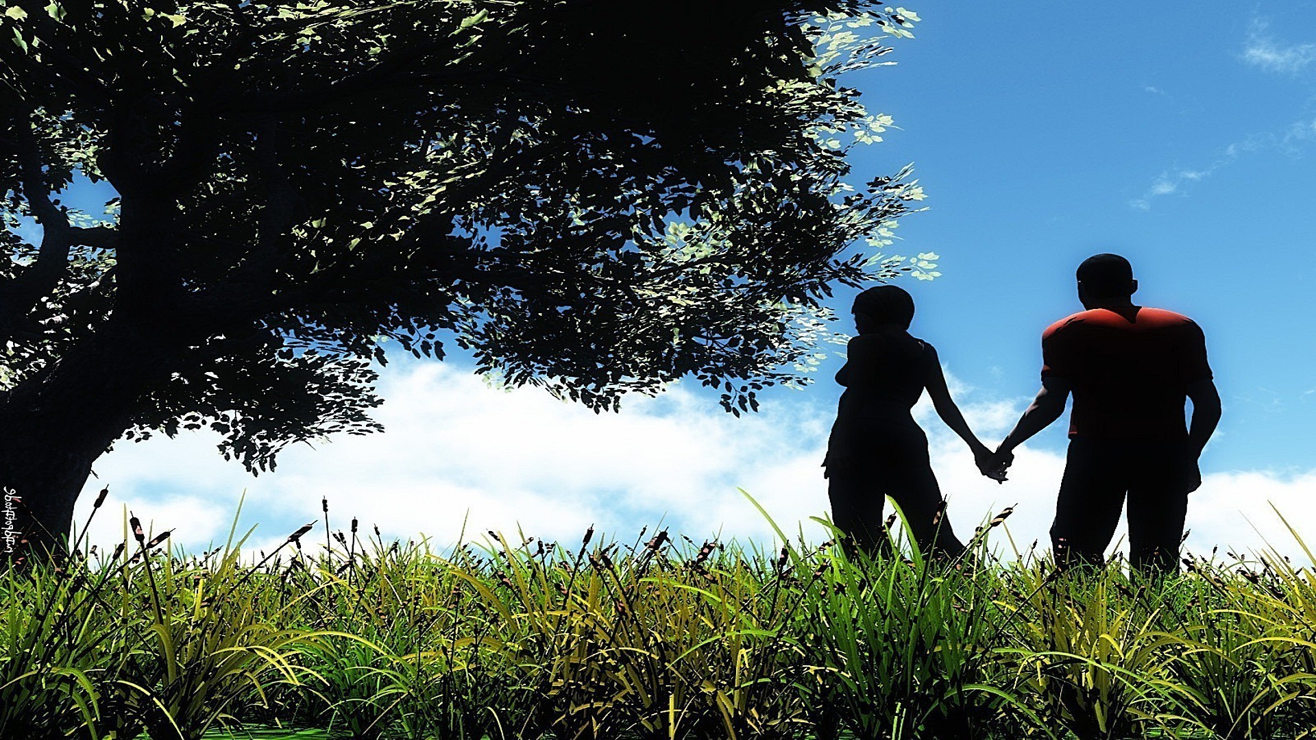 Aşıklar ağacın altında el ele tutuşurlar