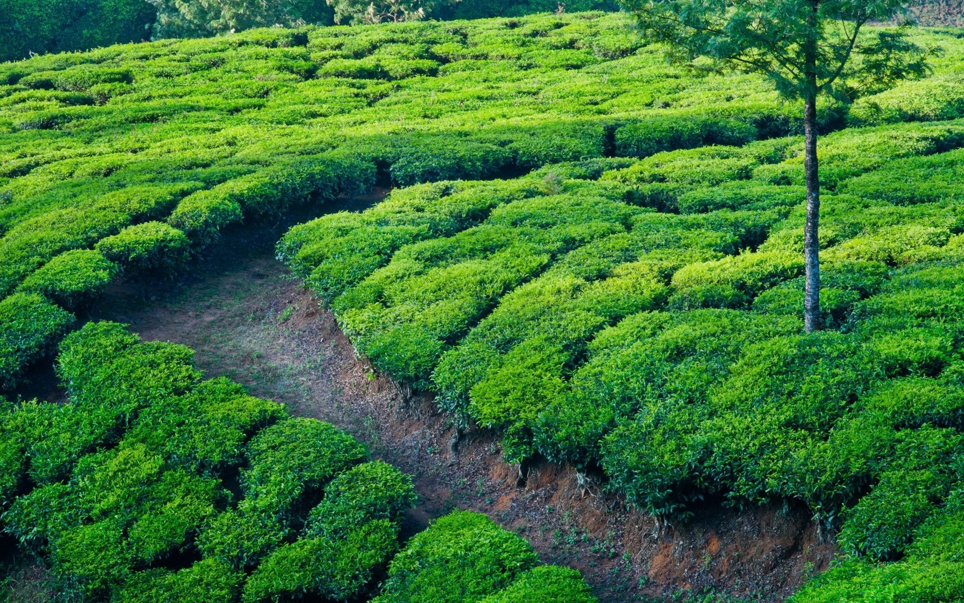 Mavi gökyüzüne karşı yeşil çayırların ortasında yalnız bir ağaç