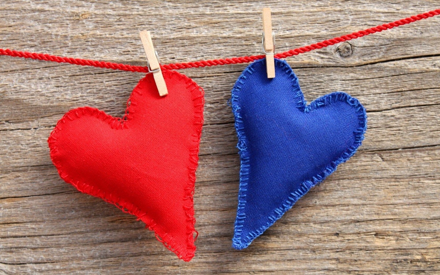 Kırmızı ve mavinin romantik paçavra kalpleri