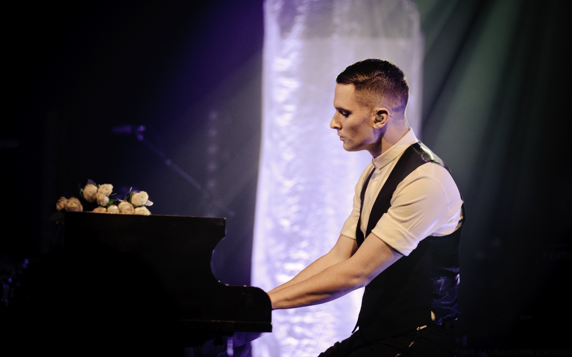 Sarı-blakitli saçlı mavi hoşnutsuz erkek