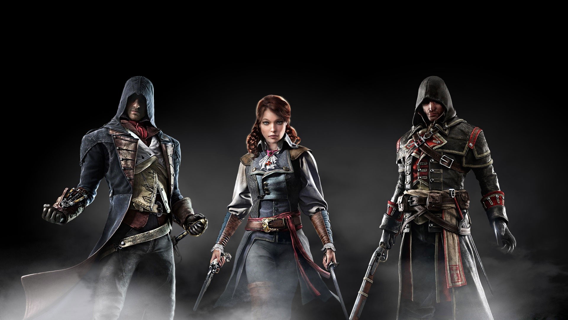 Assassin`s creed. Siyah arka plana karşı yolcular