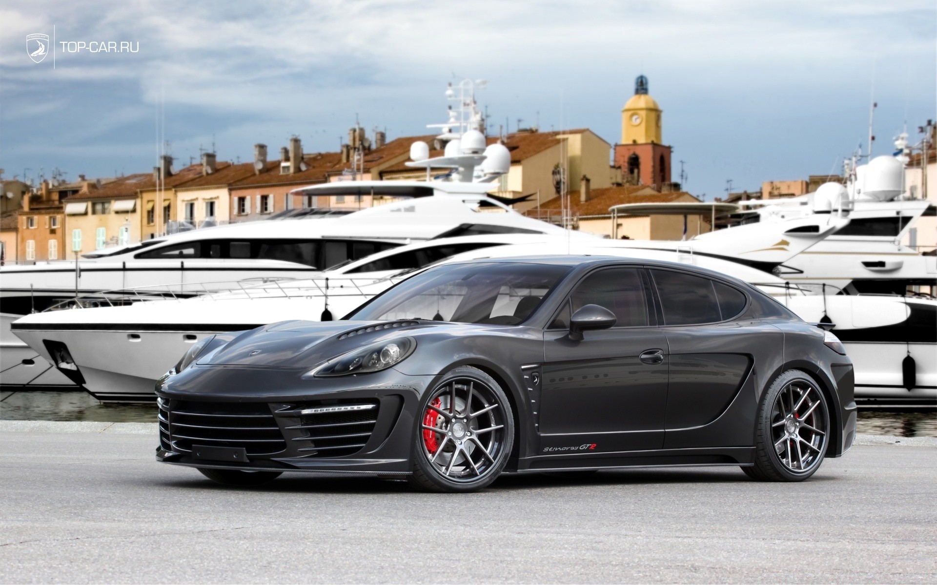 Dağların zemininde krom jantlara sahip mavi bir üstü açılır araba