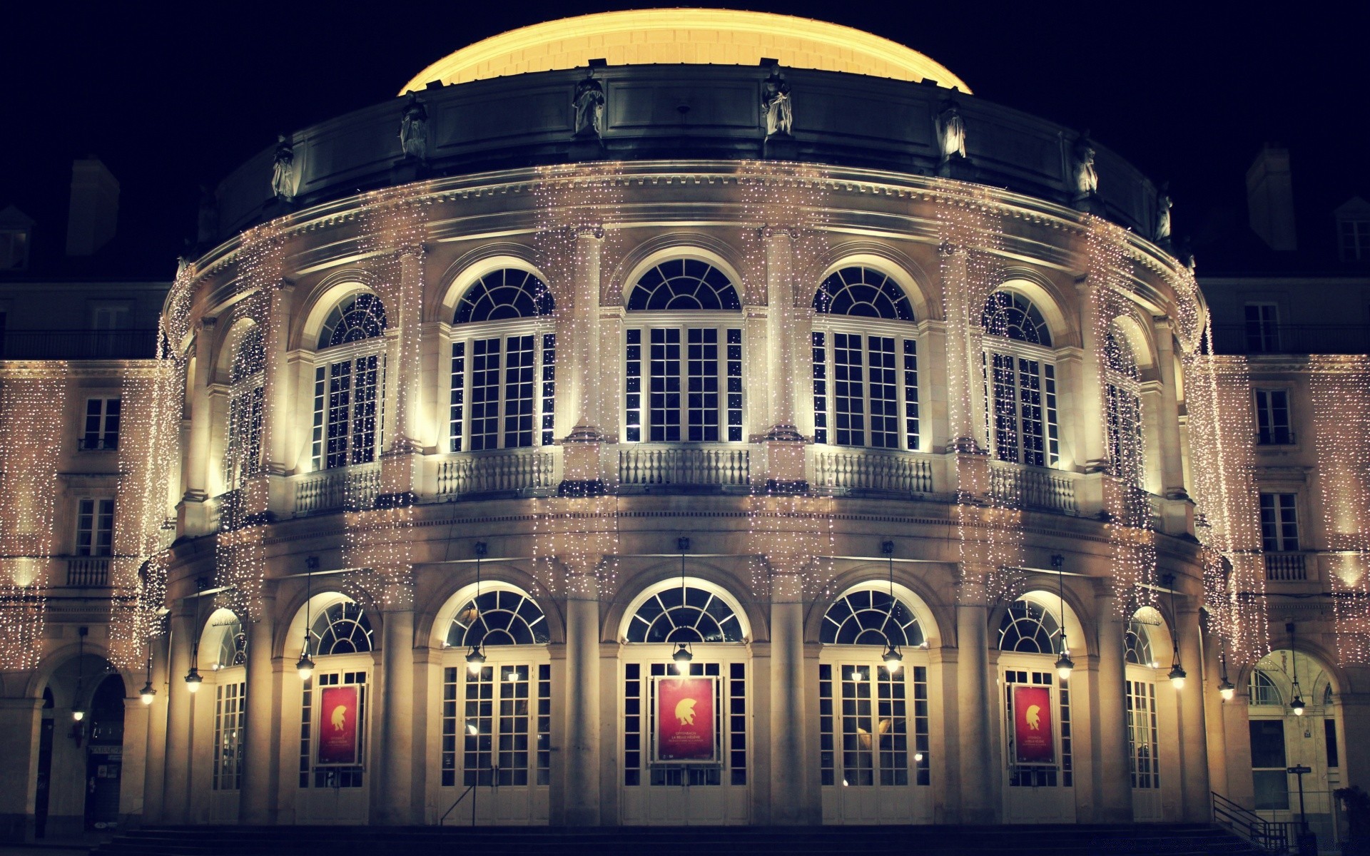 Güzel eski Avrupa evlerinin gece göletindeki yansıma